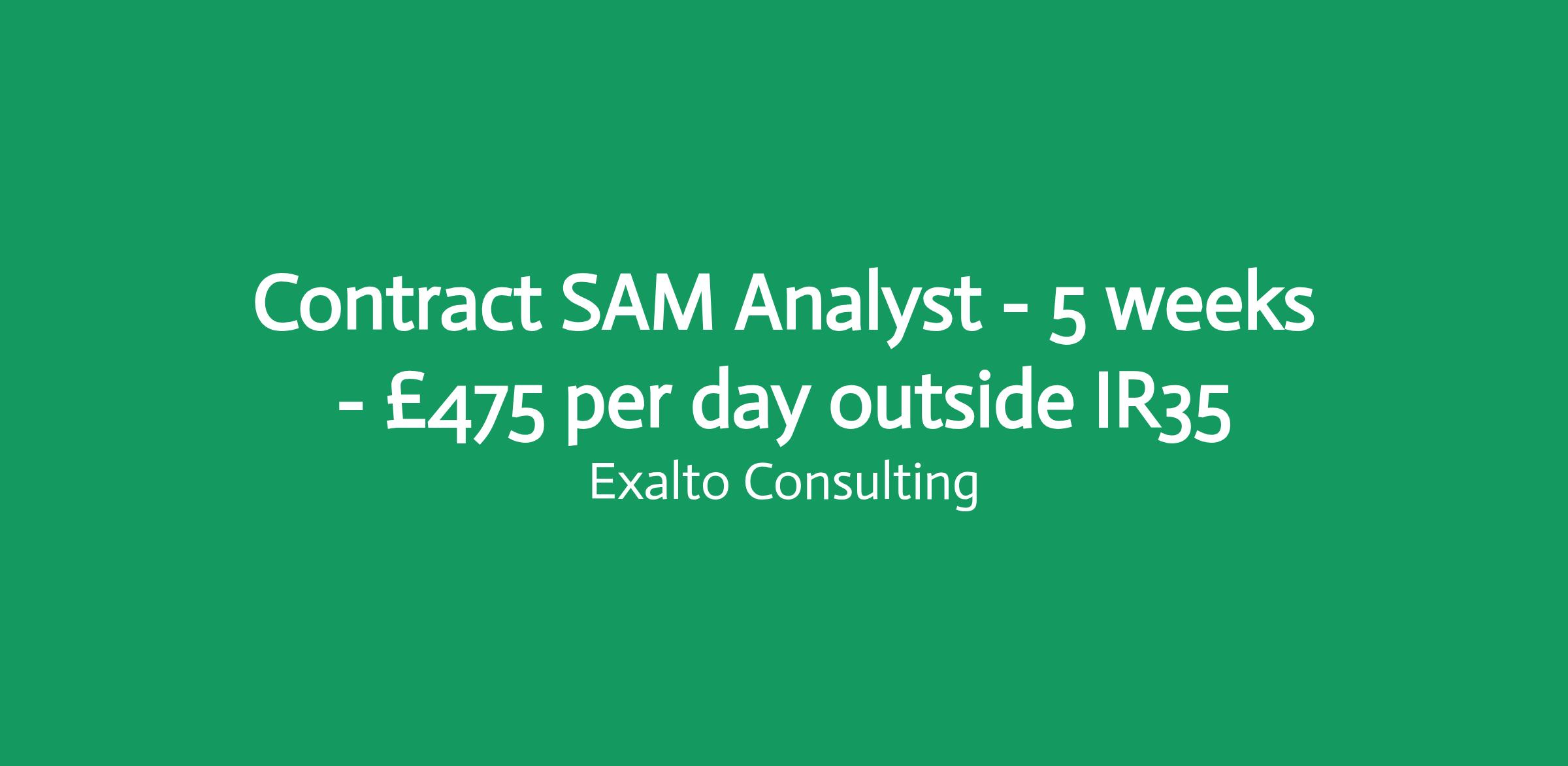 Contract SAM Analyst - 5 weeks - £475 per day outside IR35