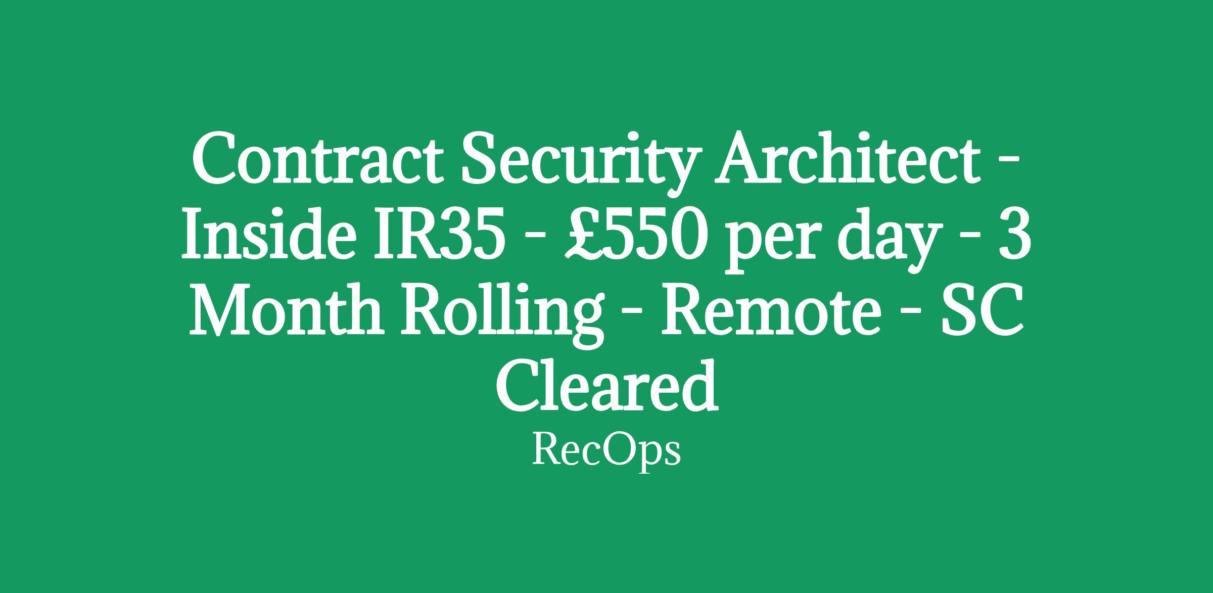 Contract Security Architect - Inside IR35 - £550 per day - 3 Month Rolling - Remote - SC Cleared