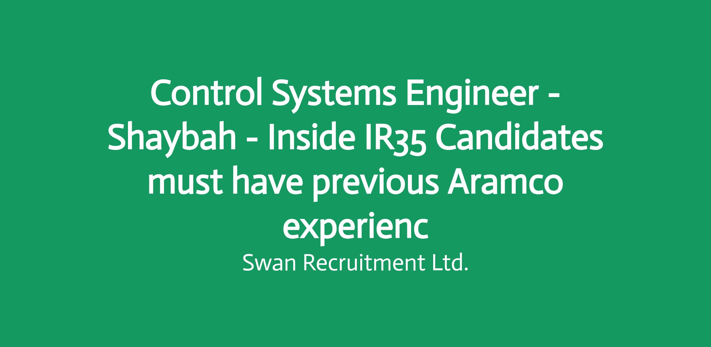 Control Systems Engineer - Shaybah - Inside IR35 Candidates must have previous Aramco experienc