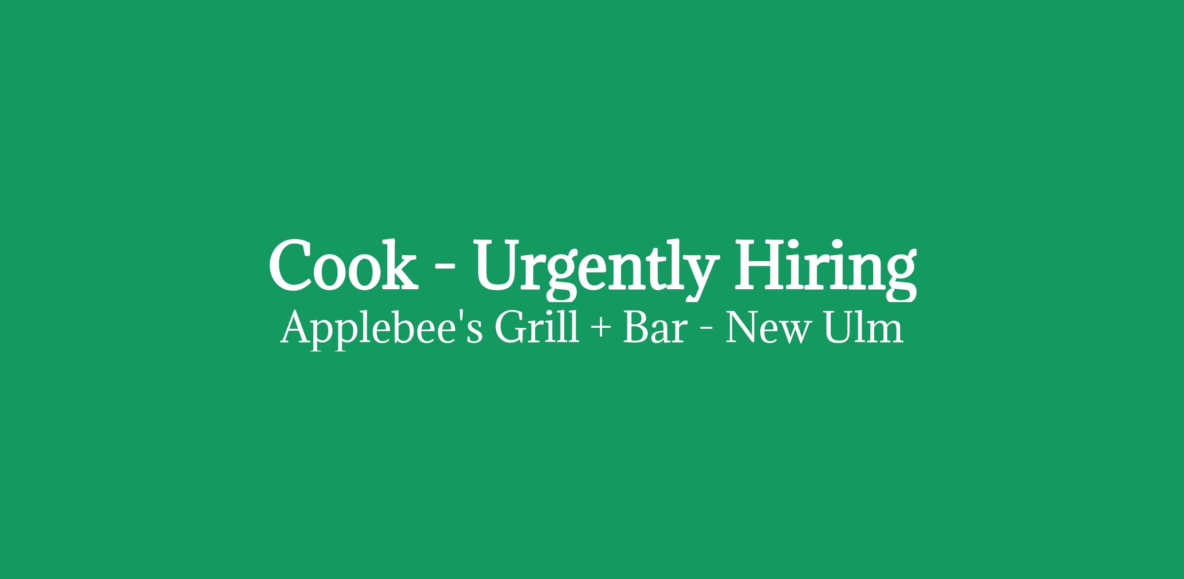 Compensation: Applebee's Cooks start at $16 up to $21 per hour