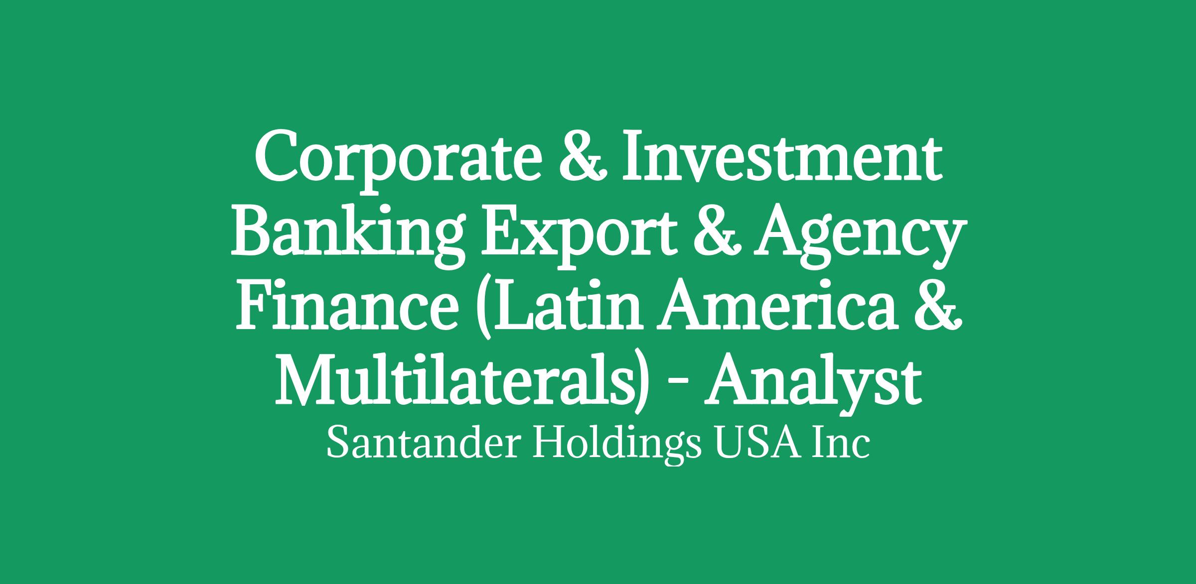 We are seeking a highly motivated Analyst to join the Corporate & Investment Banking Export & Agency Finance team, with a primary focus on Latin America and Multilateral Development Banks (MDBs). The role involves supporting the origination, structuring, and execution of financing solutions backed by Export Credit Agencies (ECAs) and Multilaterals across a range of sectors, including infrastructure, energy, and industrial projects.