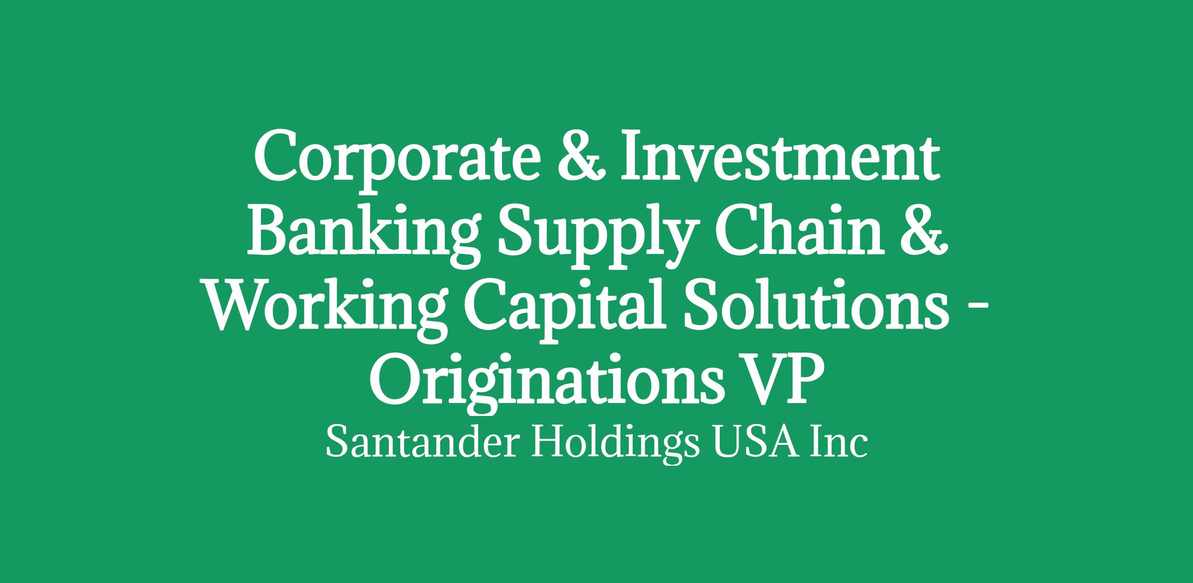 Corporate & Investment Banking Supply Chain & Working Capital Solutions - Originations VP