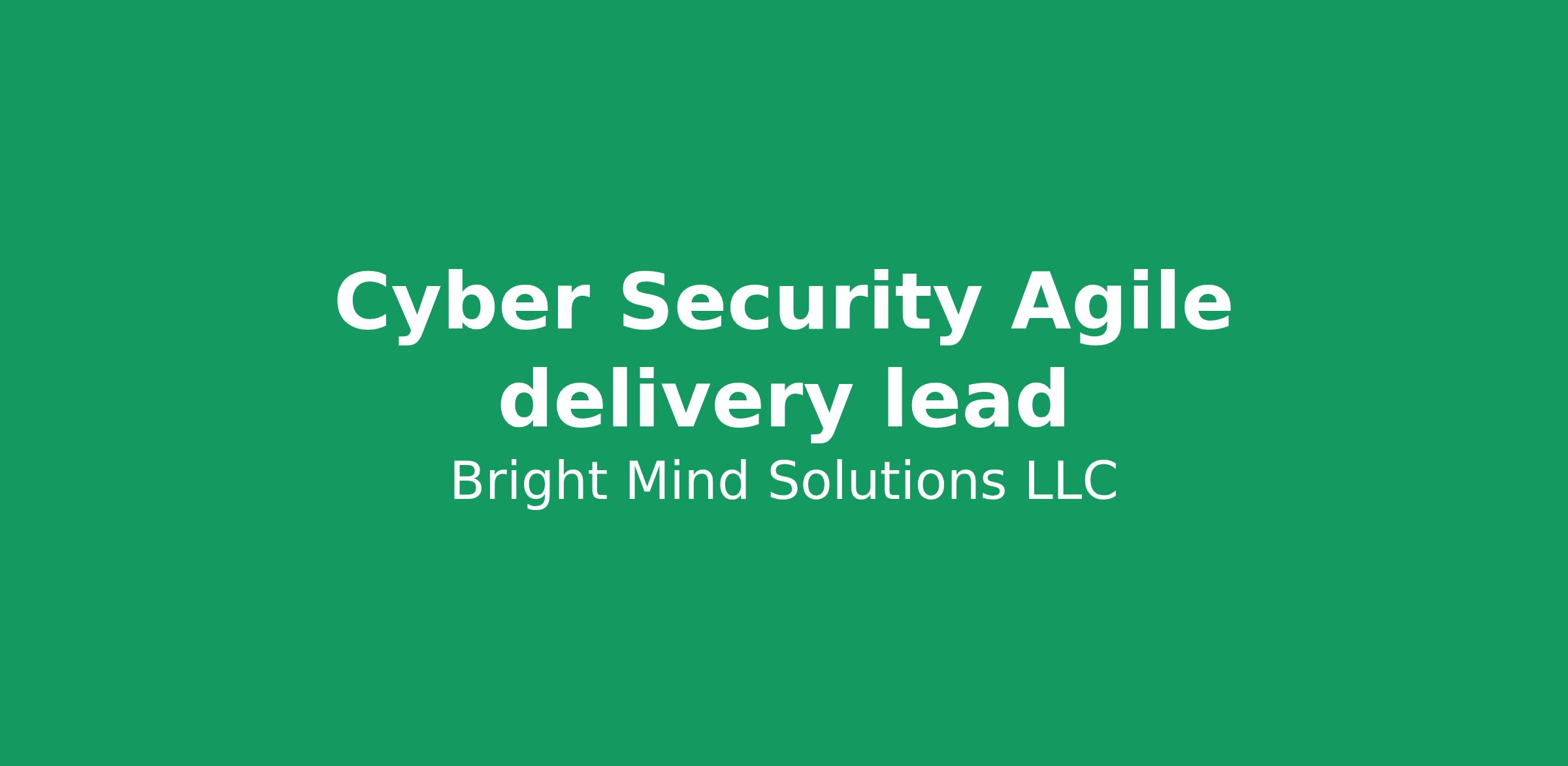 Job Title: Cyber Security Agile Delivery Lead Demonstrated ability to work on multiple complex projects in a matrixed environment; Demonstrated ability to build strong relationships; Critical thinking. Attention to detail/detail oriented/organized. Self-starter - able to get things done - take the ball and run with it - execute and deliver. Must have excellent communication skills - written and verbal; team player - work well with others - collaborative, able to challenge respectfully - tackle problems with a basis of curiosity rather than judgement.