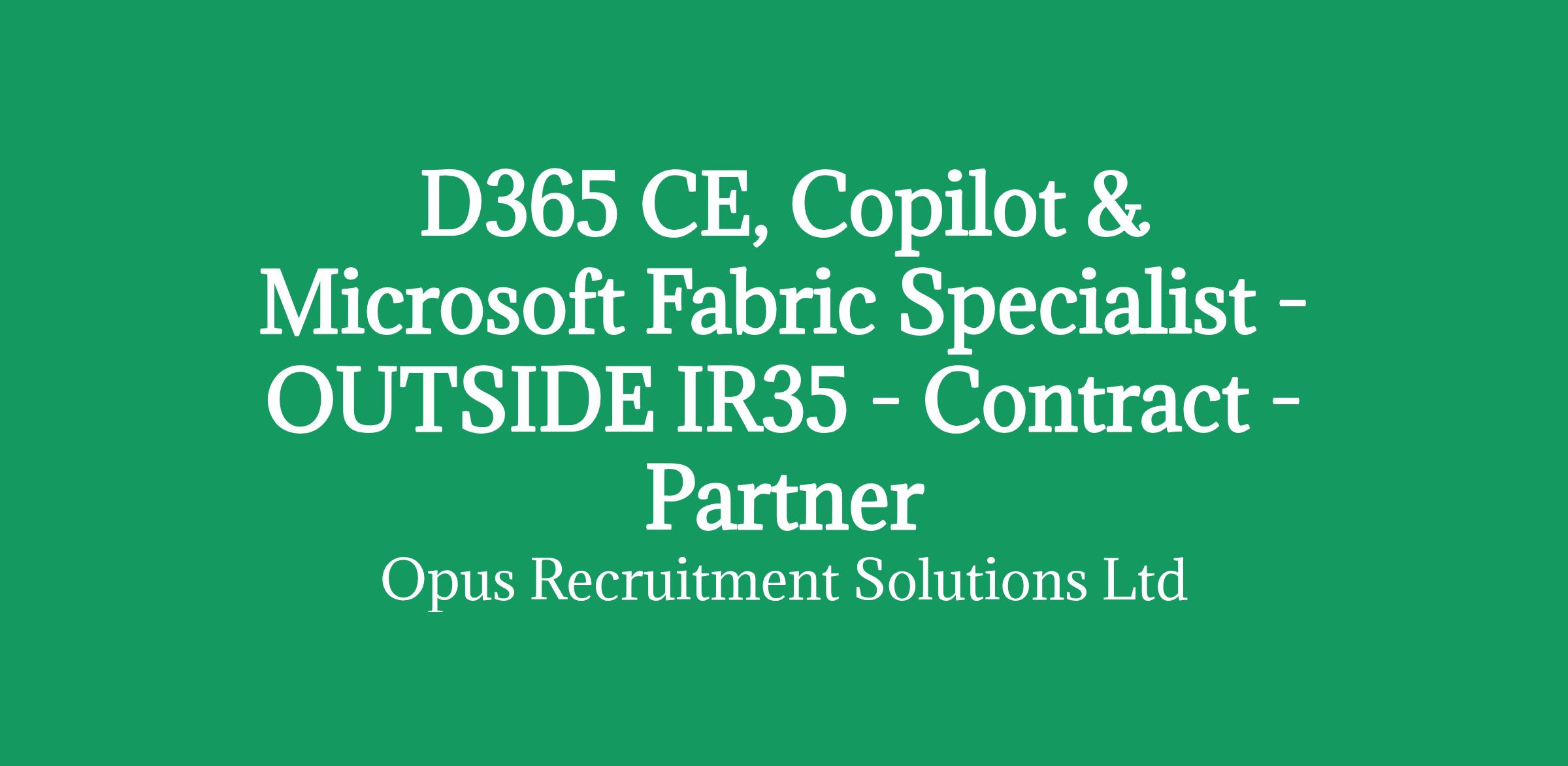 D365 CE, Copilot & Microsoft Fabric Specialist - OUTSIDE IR35 - Contract - Partner