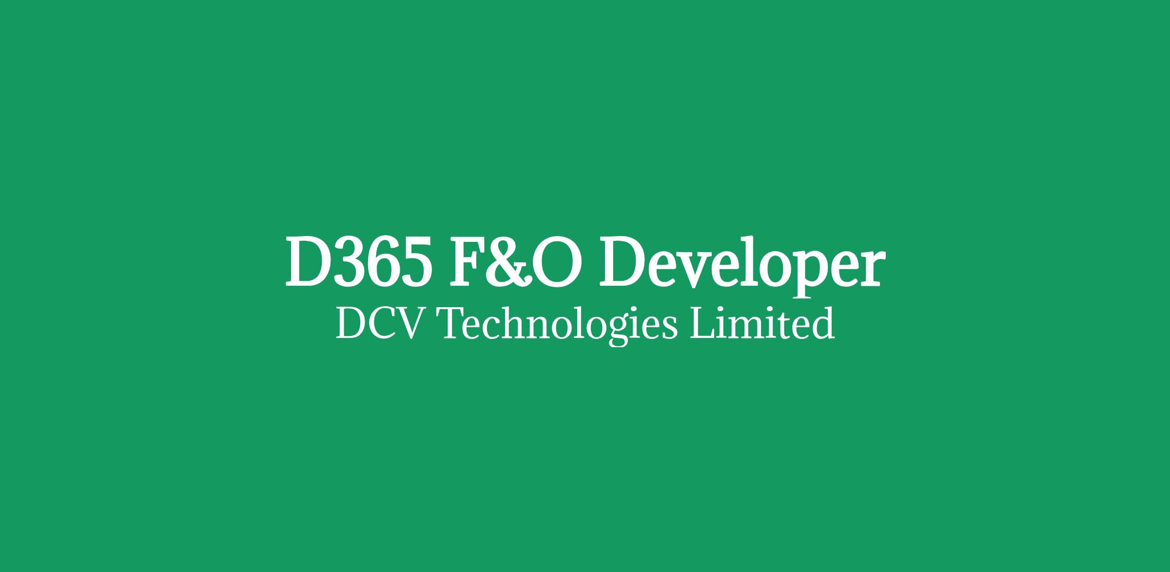 Position: D365 F&O Developer