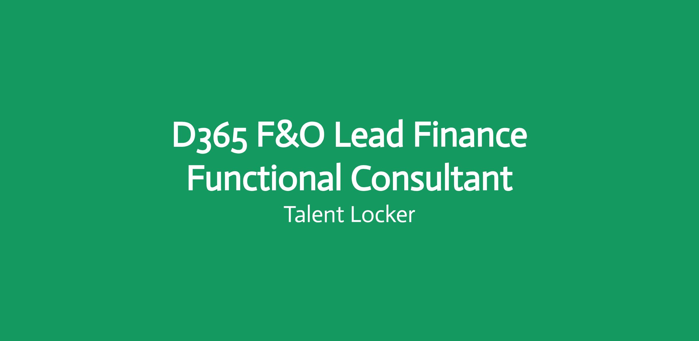D365 F&O Lead Finance Functional Consultant