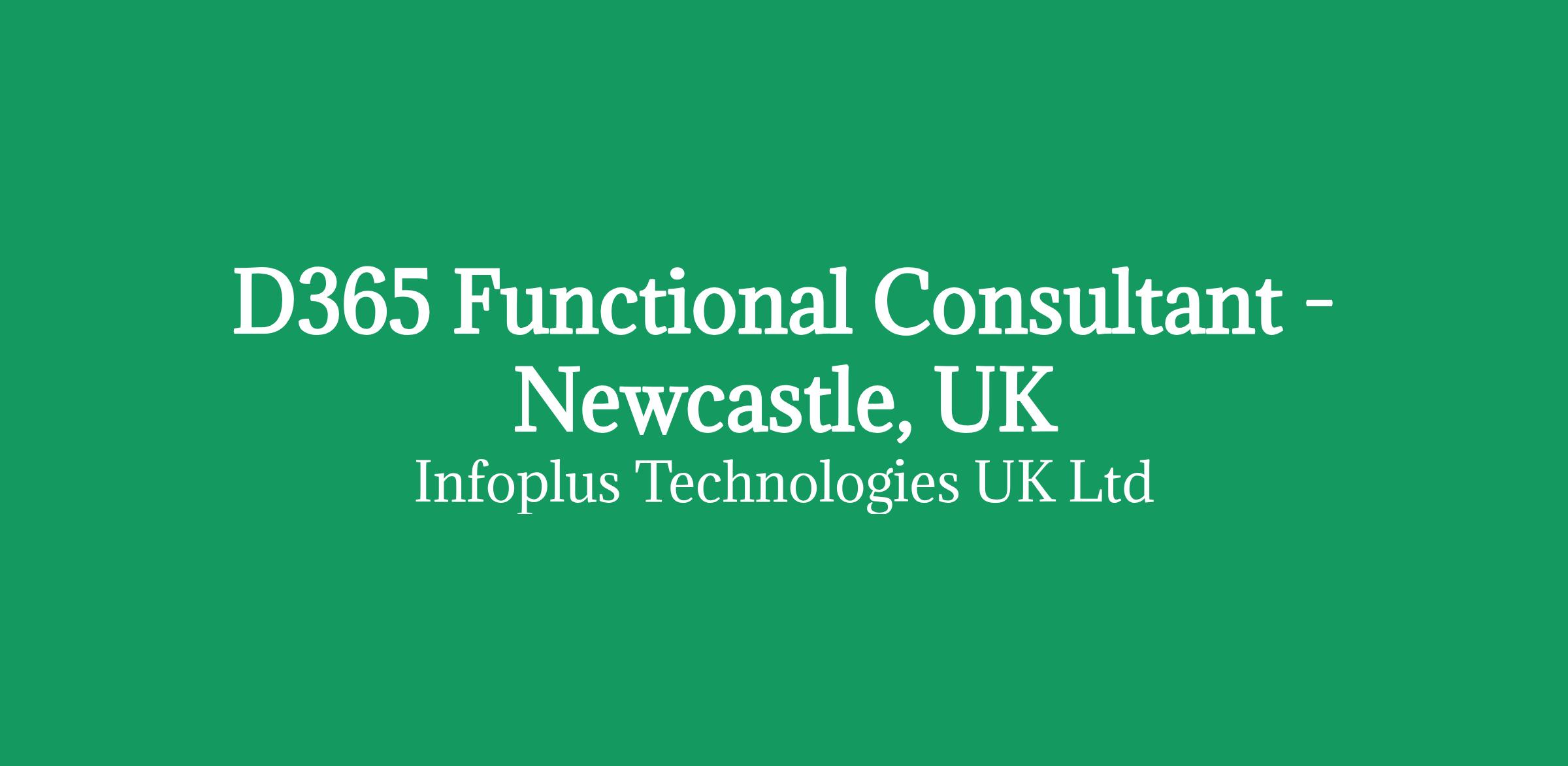 Role:D365 Functional Consultant Location: Newcastle, UK Duration: 6 Months Mode: Hybrid (2-3 days in a week) Job Description: