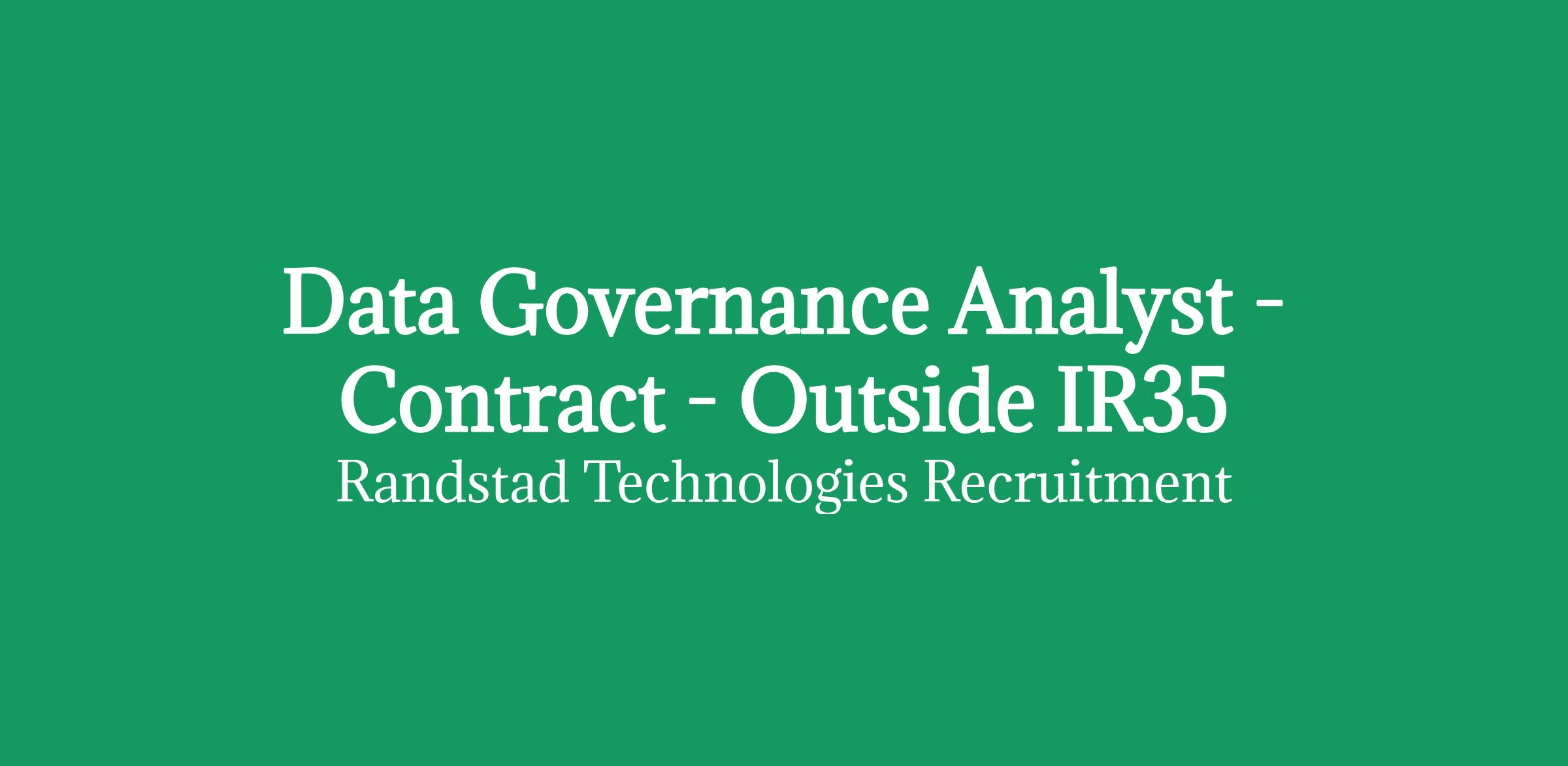 Data Governance Analyst - Contract - Outside IR35
