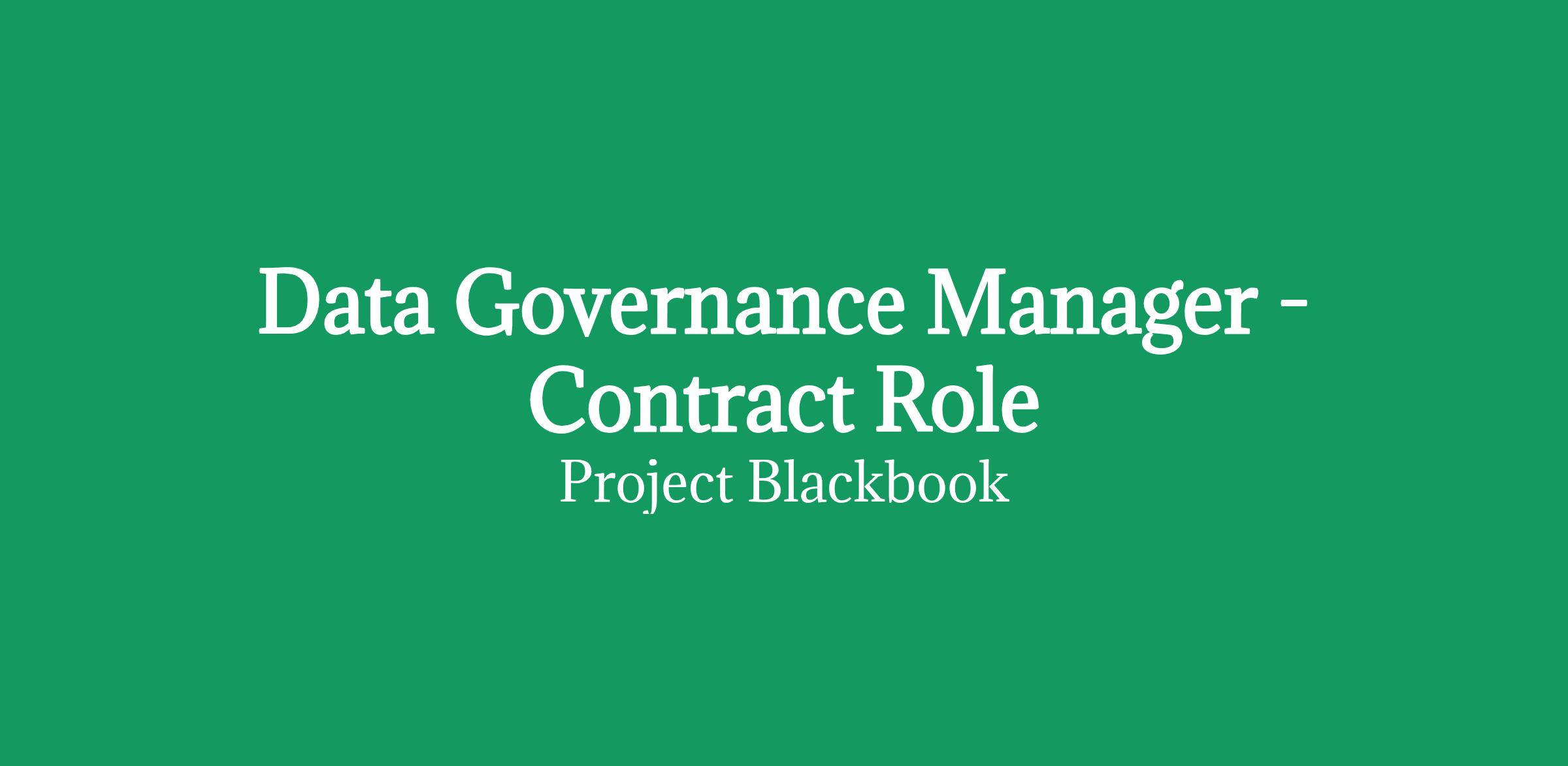 Role: Data Governance Manager - Contract Role