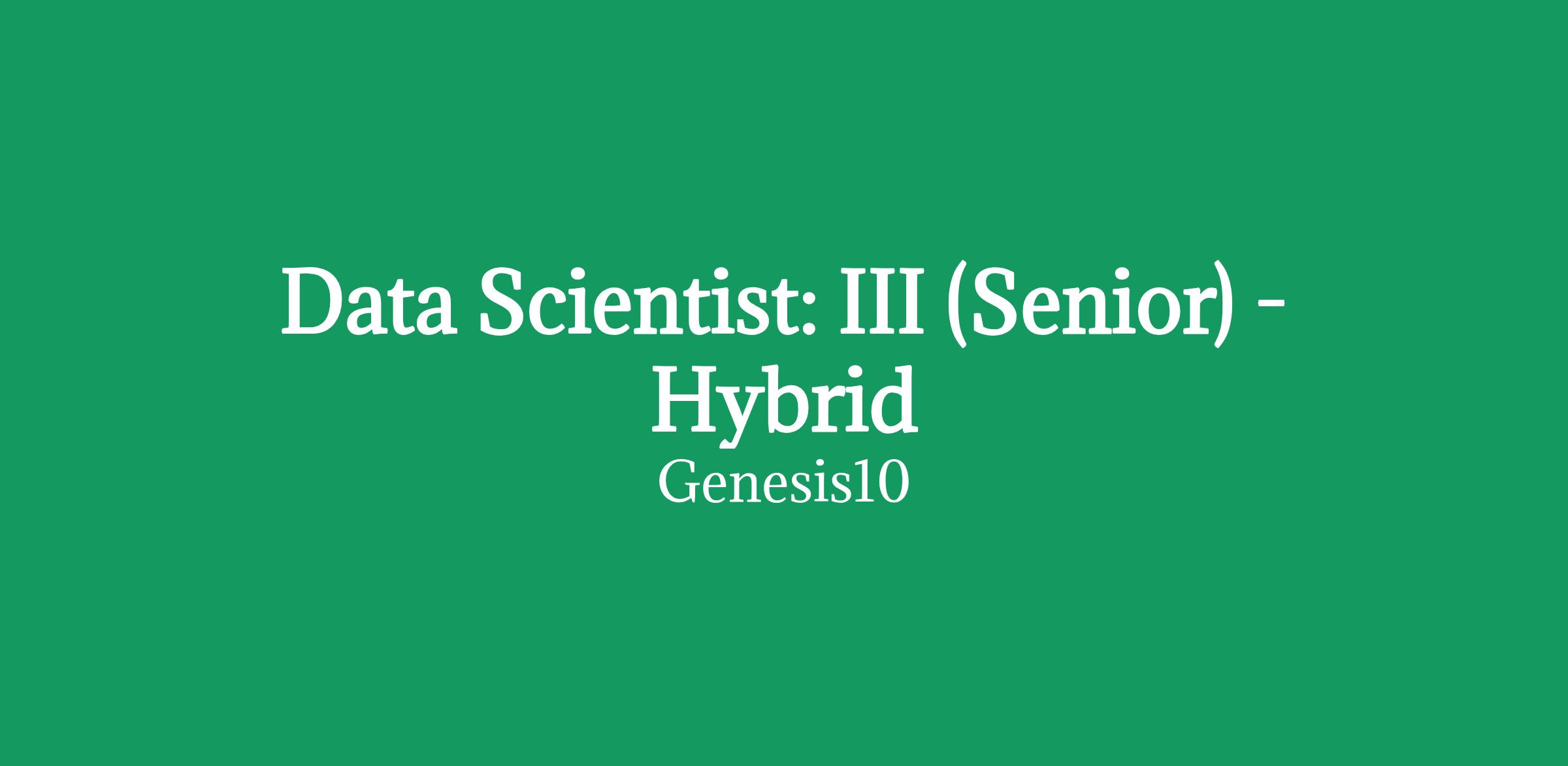 Genesis10 is seeking a Data Scientist: III (Senior) for a hybrid contract to hire position with a leading client in Columbus, OH. Compensation: $55-$63/HR; Conversion Salary $100-105k with 15% bonus Job Description: This dynamic role uses a consultative approach with the business segments to dive into our customer, product, channel, and digital data to uncover opportunities for consumer experience optimization and customer value delivery. You will also enable stakeholders with actionable, intuitive performance insights that provide the business with direction for growth. The ideal candidate will have a robust mix of technical and communication skills, with a passion for optimization, data storytelling, and data visualization. You will collaborate with a centralized team of data scientists as well as teams across the organization including Product, Marketing, Data, Finance, and senior leadership. This is an exciting opportunity to be a key influencer to the company's strategic decisions and to learn and grow with our Analytics team. Responsibilities: Ability to use advanced analytics methods to extract value from business data. Ability to perform large-scale experimentation and build data-driven models to answer business questions. Conducts research on cutting-edge techniques and tools in machine learning/deep learning/artificial intelligence. Determines requirements that will be used to train and evolve deep learning models and algorithms. Influences product teams through presentation of data-based recommendations. Performs other duties as assigned. Requirements: Master's degree completed by Spring 2025 in Computer Science or Information Systems, Decision Sciences, Statistics, Operations Research, Applied Mathematics, Engineering, or a STEM degree or in lieu of a Master's degree, Bachelor's degree with a minimum of 3 years' work experience in analytics or data science Experience with R, RStudio, Python, SAS, SQL, NoSQL Preferred Qualifications: Up-to-date knowledge of machine learning and data analytics tools and techniques Knowledge in predictive modeling methodology Experienced at leveraging both structured and unstructured data sources Willingness and ability to learn new technologies on the job Work and/or educational experience conducting statistical analysis with advanced statistical software, scripting languages, and packages Work and/or educational experience with big data analysis tools and techniques Foundational knowledge of building and deploying predictive models, web scraping, and scalable data pipelines Understanding of statistical methods and skills such as Bayesian Networks Inference, linear and non-linear regression, hierarchical, mixed models/multi-level modeling Experience with Cloud Machine Learning technologies (e.g., AWS Sagemaker) Experience with machine learning environments (e.g., TensorFlow, scikit-learn, caret) Financial Services background Genesis10 - Contract & Perm/Direct Hire Ranked a Top Staffing Firm in the U.S. by Staffing Industry Analysts for six consecutive years, Genesis10 puts thousands of consultants and employees to work across the United States every year in contract, contract-for-hire, and permanent placement roles. With more than 300 active clients, Genesis10 provides access to many of the Fortune 100 firms and a variety of mid-market organizations across the full spectrum of industry verticals. For contract roles, Genesis10 offers the benefits listed below. If this is a perm-placement opportunity, our recruiter can talk you through the unique benefits offered for that particular client. Benefits of Working with Genesis10: Access to hundreds of clients, most who have been working with Genesis10 for 5-20+ years. The opportunity to have a career-home in Genesis10; many of our consultants have been working exclusively with Genesis10 for years. Access to an experienced, caring recruiting team (more than 7 years of experience, on average.) Behavioral Health Platform Medical, Dental, Vision Health Savings Account Voluntary Hospital Indemnity (Critical Illness & Accident) Voluntary Term Life Insurance 401K Sick Pay (for applicable states/municipalities) Commuter Benefits (Dallas, NYC, SF) For multiple years running, Genesis10 has been recognized as a Top Staffing Firm in the U.S., as a Best Company for Work-Life Balance, as a Best Company for Career Growth, for Diversity, and for Leadership, amongst others. To learn more and to view all our available career opportunities, please visit us at our website . Genesis10 is an Equal Opportunity Employer. Candidates will receive consideration without regard to their race, color, religion, sex, sexual orientation, gender identity, national origin, disability, or status as a protected veteran.