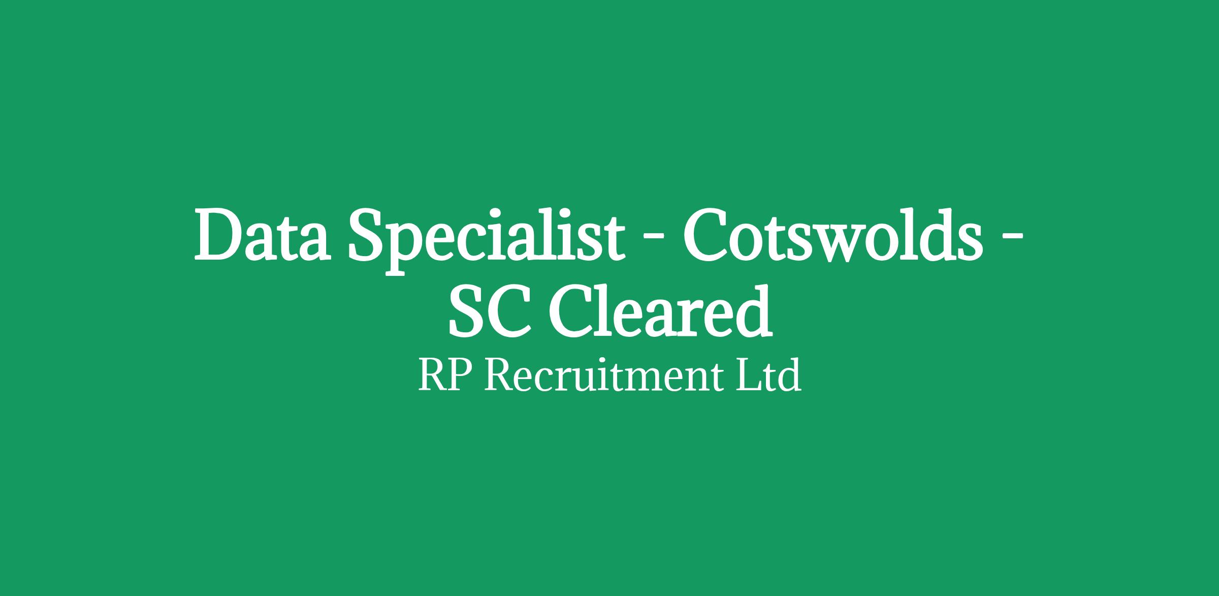 Data Specialist - Cotswolds - SC Cleared