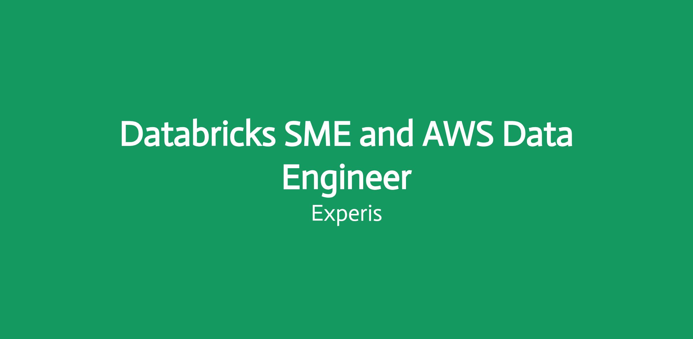 Databricks SME and AWS Data Engineer