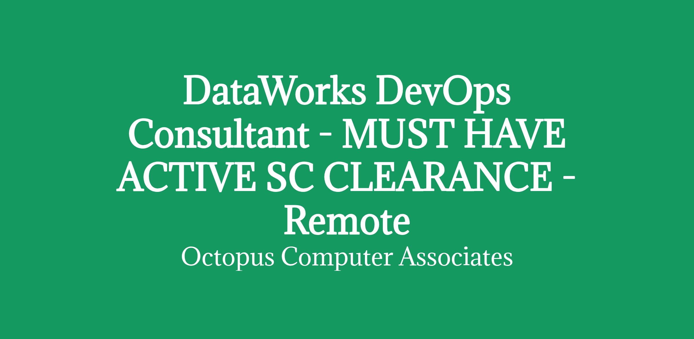 Blue chip client is urgently looking for a DataWorks DevOps Consultant - MUST HAVE ACTIVE SC CLEARANCE.