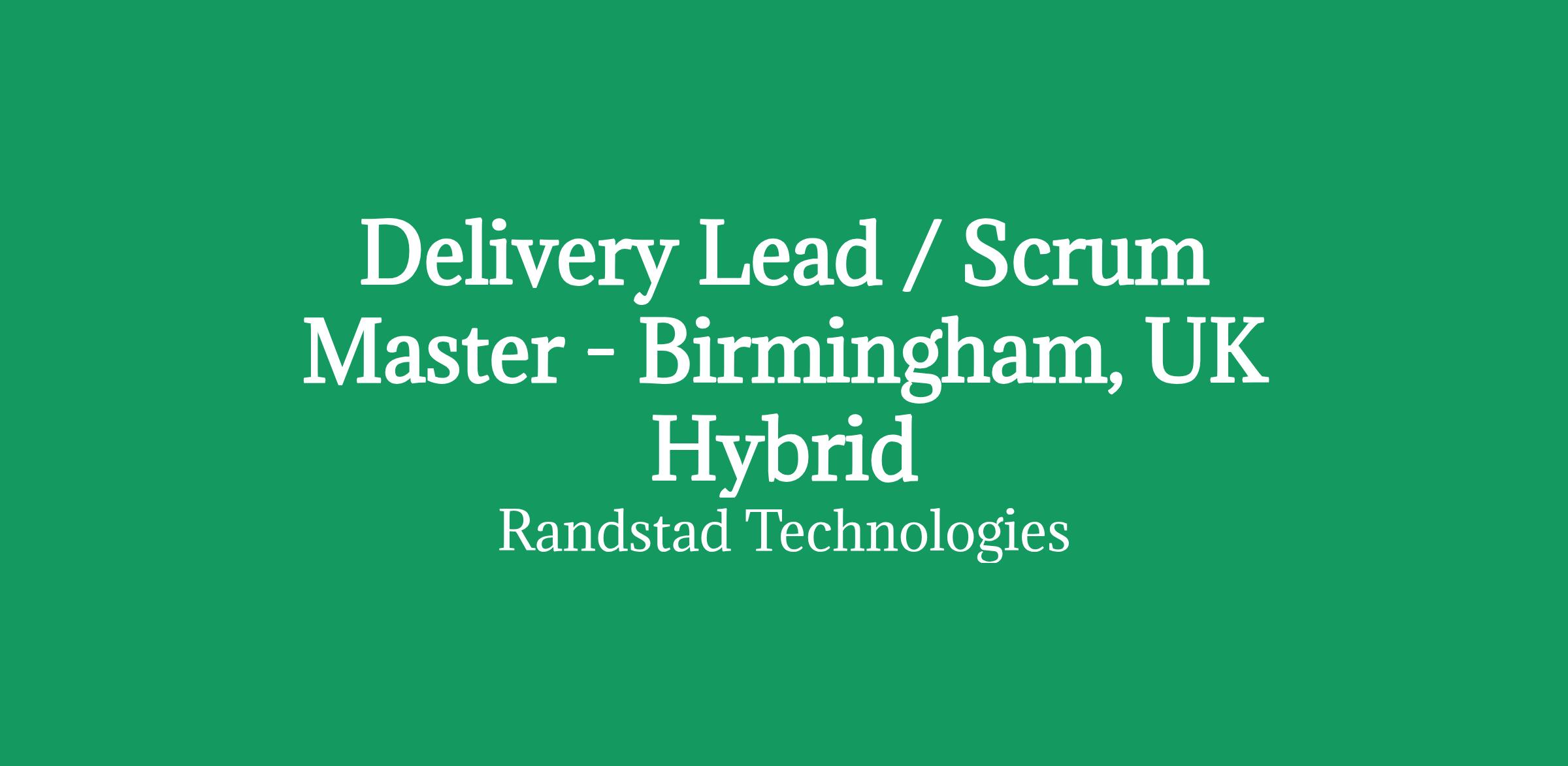 Role: Delivery Lead / Scrum MasterType: Contract (6 Months)Location: Birmingham, UKWorking Model: Hybrid (2/3 Days in office per Week)