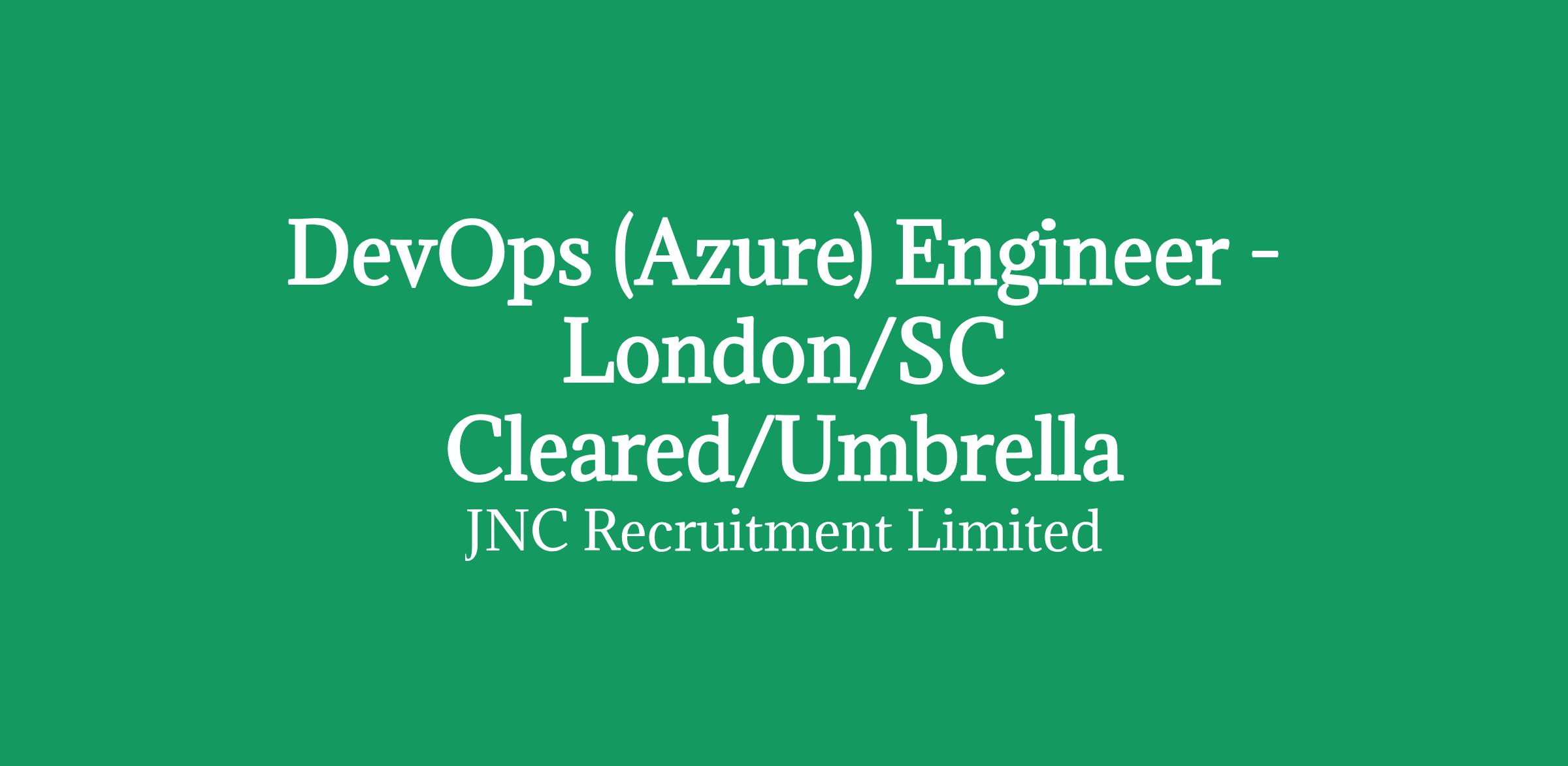 DevOps (Azure) Engineer - London/SC Cleared/Umbrella