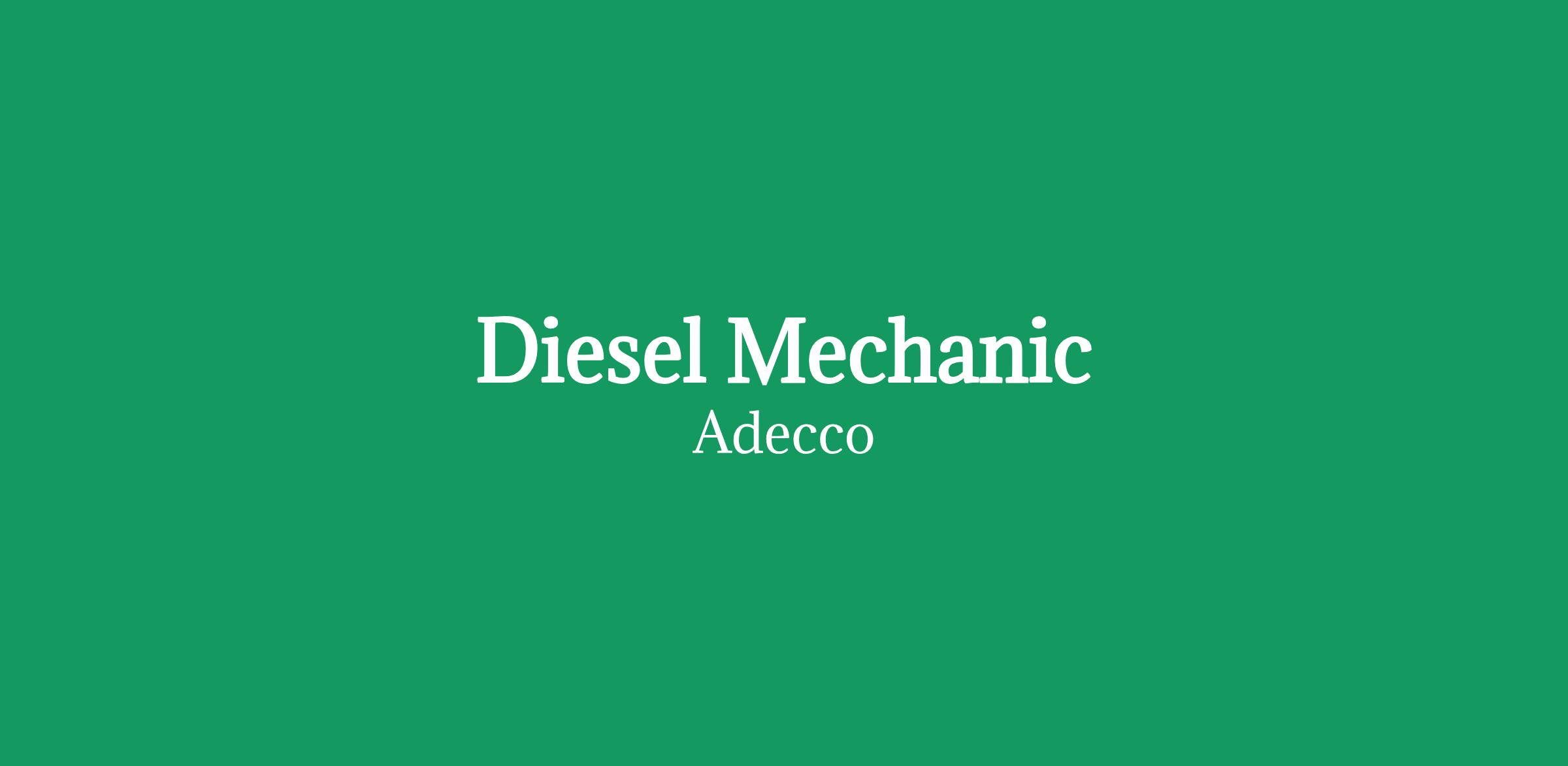 Diesel Mechanic - Job DescriptionAdecco is Hiring! Your Next Career Move Starts Here. Ready to put your diesel mechanic skills to work with an employer who truly values your expertise