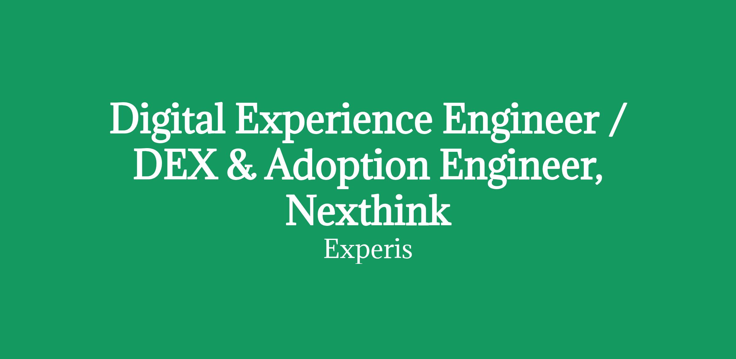 Digital Experience Engineer / DEX & Adoption Engineer, Nexthink