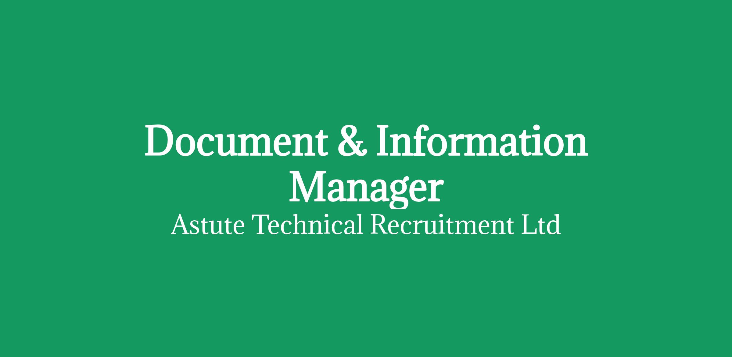 We are working in partnership with a global Energy provider. We are currently recruiting for a Document & Information Manager to work on multiple large scale industrial development projects in the UK.