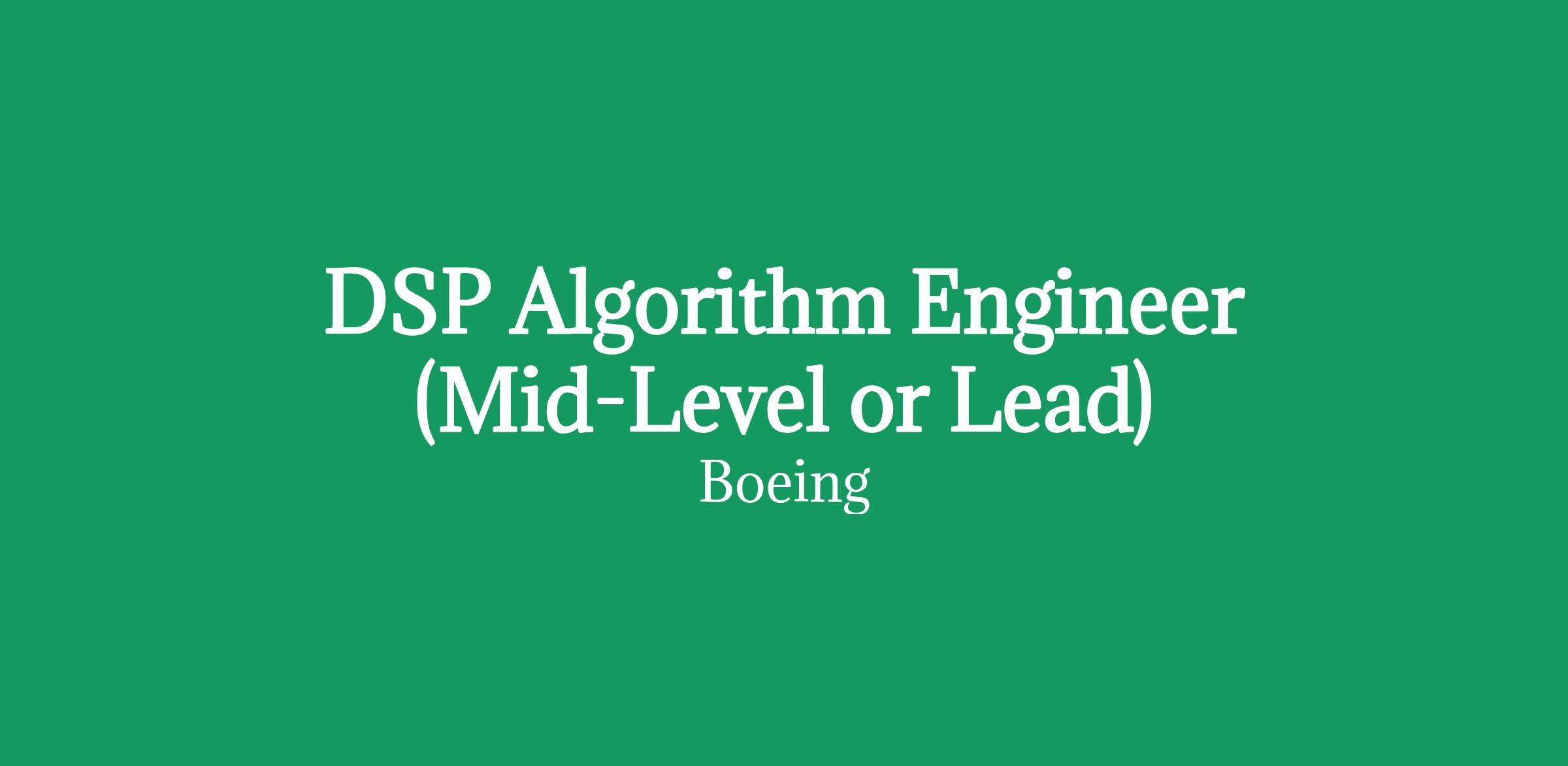 Boeing Defense, Space and Security is seeking DSP Algorithms Engineers (Mid-Level or Lead) to join the Space, Intelligence and Weapons Systems teams in El Segundo, CA! Boeing's Space, Intelligence and Weapons Systems oversees the company's major commercial and government satellite and ground programs for communications, national defense, and other missions.