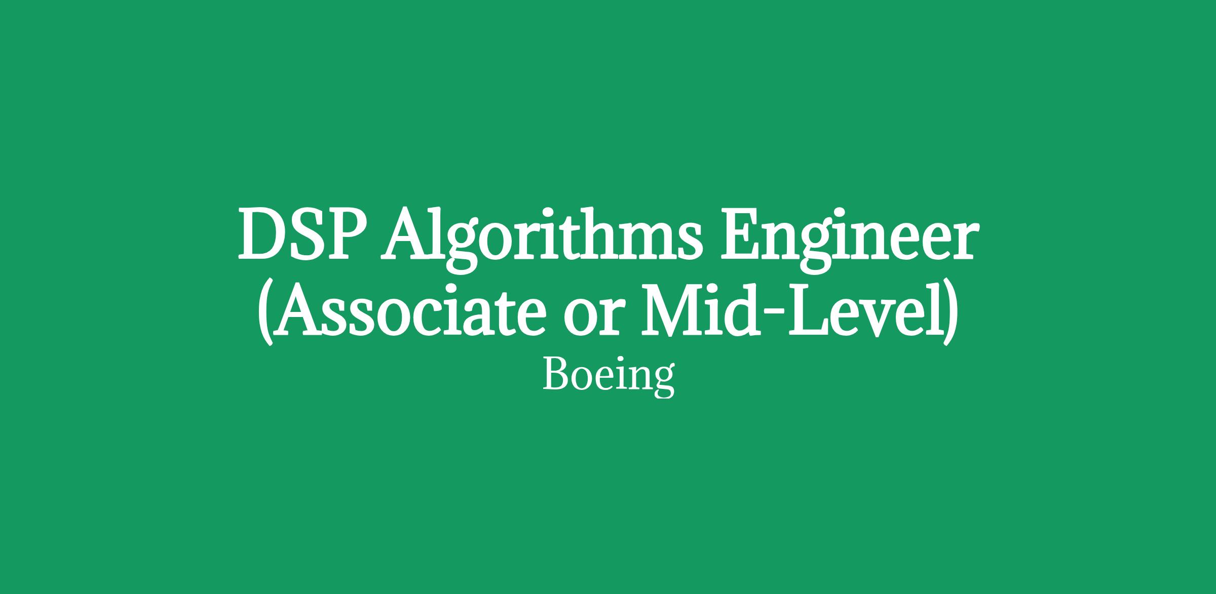 Boeing Defense, Space and Security is seeking DSP Algorithms Engineers (Associate or Experienced) to join the Space, Intelligence and Weapons Systems teams in El Segundo, CA ! Boeing's Space, Intelligence and Weapons Systems oversees the company's major commercial and government satellite and ground programs for communications, national defense, and other missions.