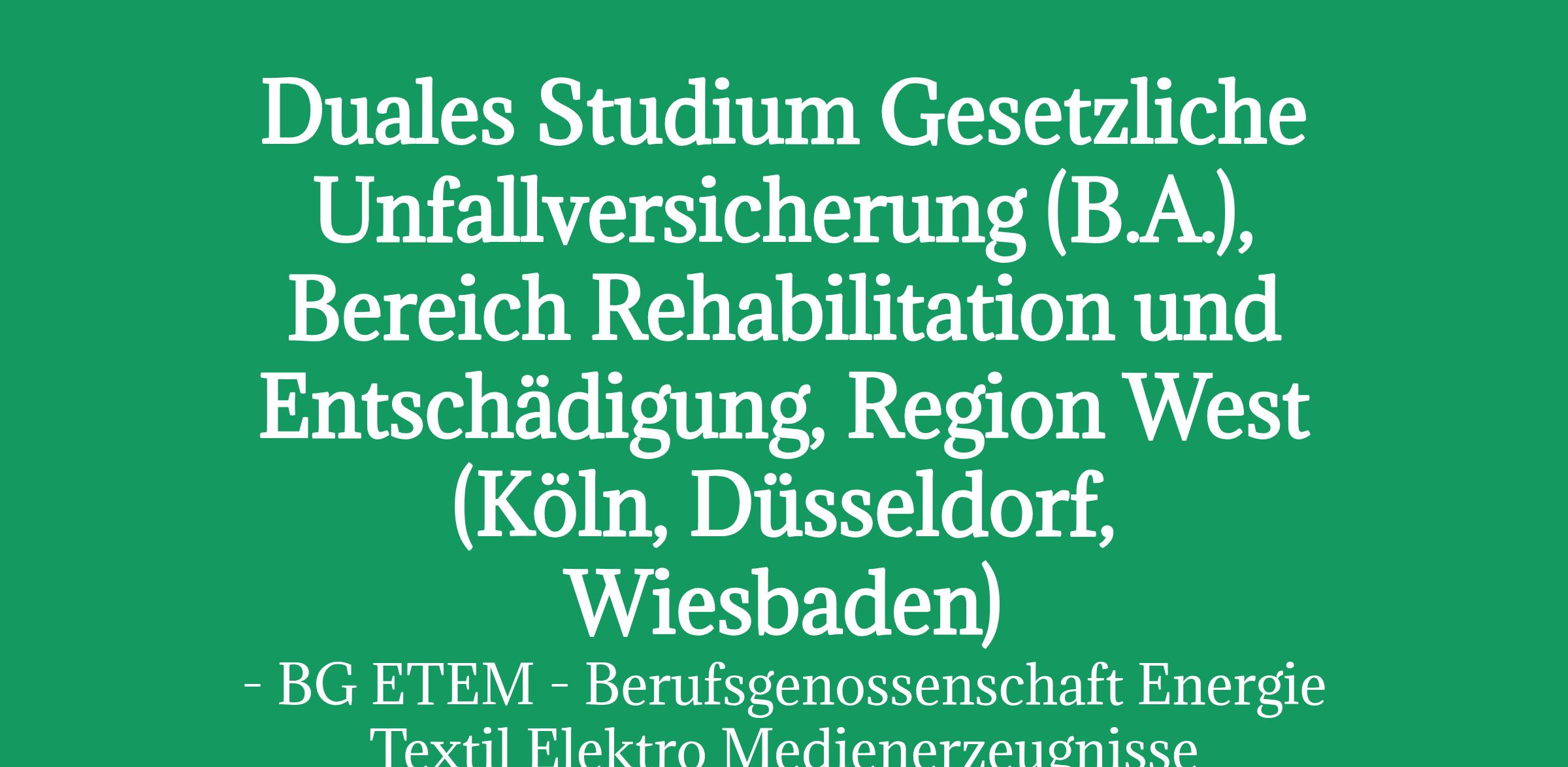 Starte dein Duales Studium Gesetzliche Unfallversicherung im Bereich Rehabilitation und Entschädigung in der Region West (Köln, Düsseldorf, Wiesbaden) zum 1. Oktober 2026.