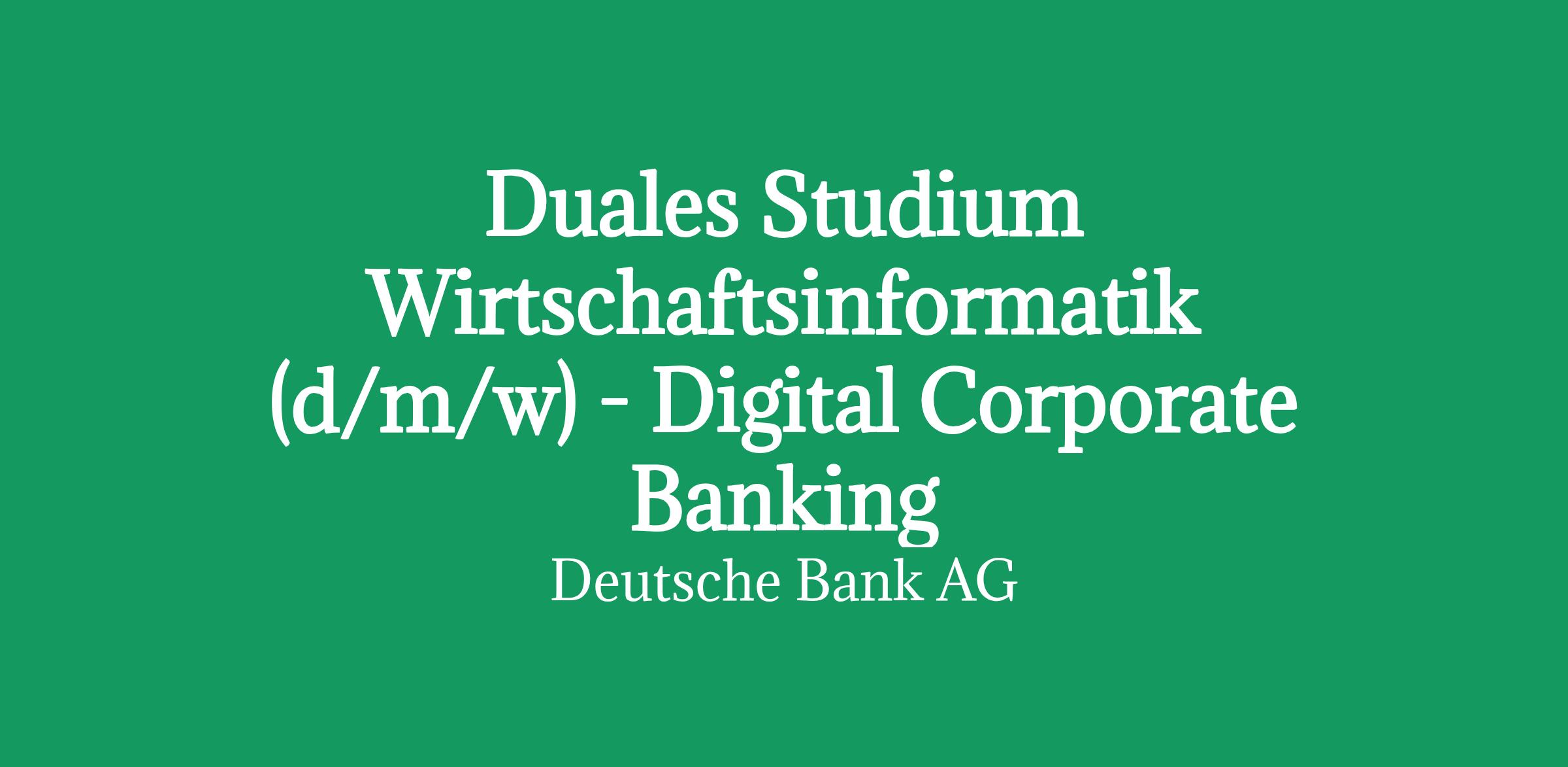 Mit diesem Dualen Studium richten wir uns an innovative, digitale Pioniere und solche, die es werden wollen. Gemeinsam mit dir wollen wir die digitale Transformation der Unternehmensbank gestalten und vorantreiben. An der Schnittstelle zwischen Business und IT agieren wir als Start-up innerhalb eines Konzerns und liefern wichtige Impulse für die Weiterentwicklung und Digitalisierung der Deutschen Bank - und du trägst aktiv dazu bei. Auf deinem Weg unterstützen wir dich mit zielgerichteten Seminaren zu fachlichen und methodischen Themen und Network-Events.