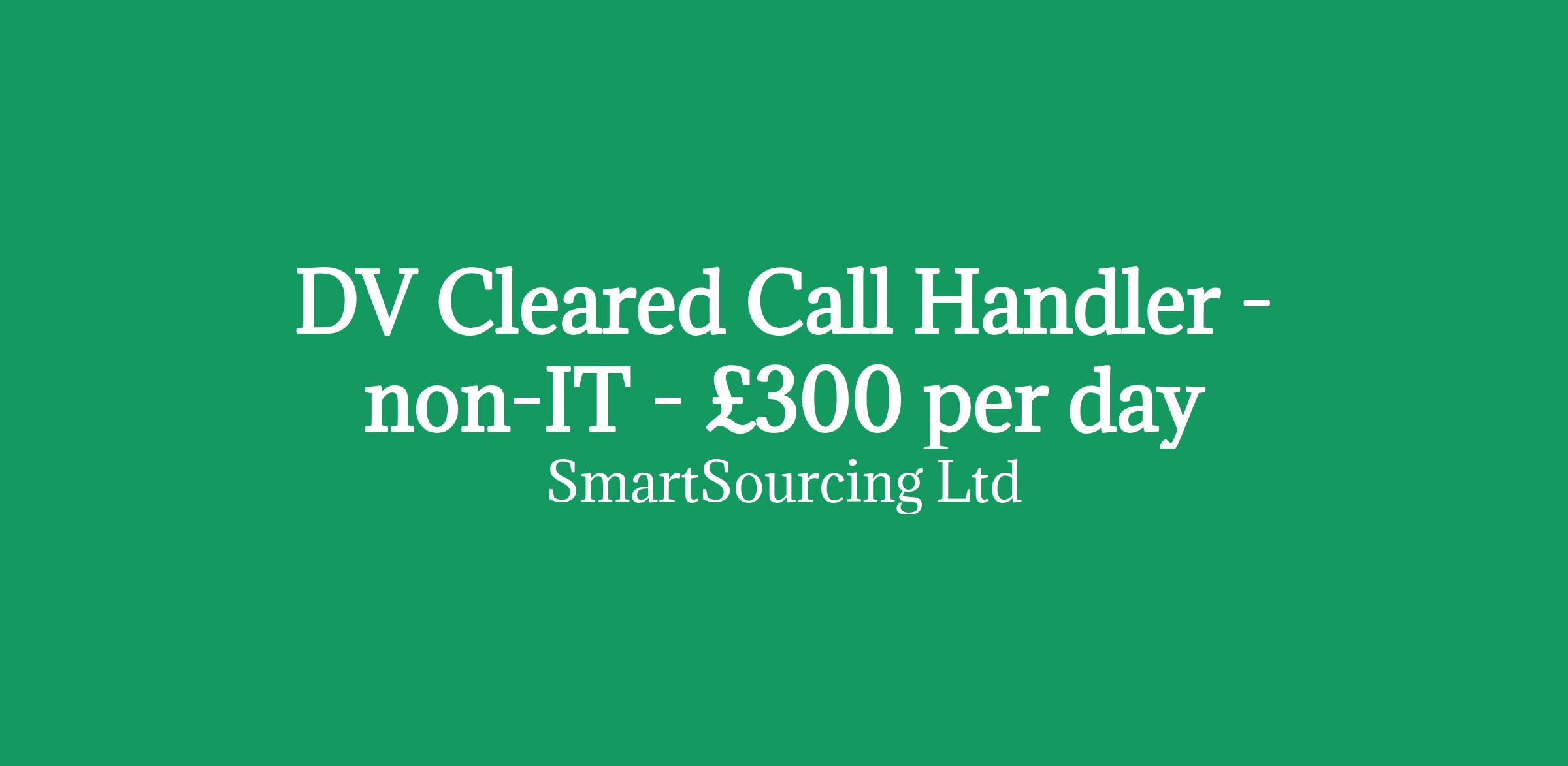 DV Cleared Call Handler opportunity available suitable for ex-Police individuals or those who have worked in a national security or defence environment. This role is paying 300 per day.