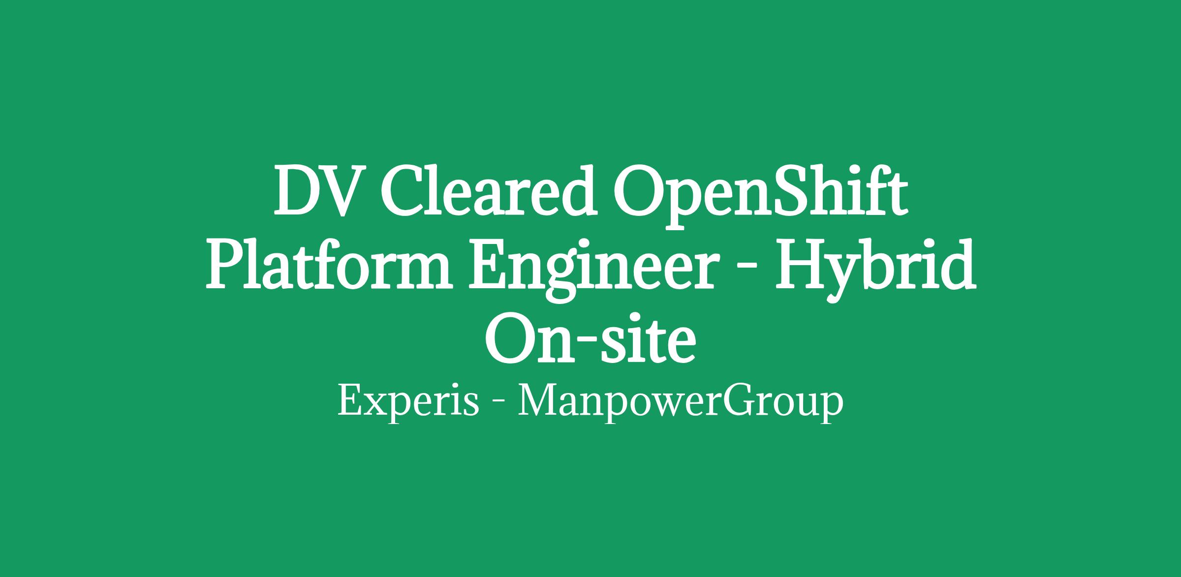 A leading staffing firm is seeking a Senior DevSecOps / OpenShift Platform Engineer to support secure container platforms in Corsham. This role requires strong hands-on experience with OpenShift and Kubernetes, as well as a DevOps or DevSecOps background. The ideal candidate will have experience deploying workloads in production and hold active DV Clearance. This is a hybrid position requiring 3 days onsite per week, offering up to £650 per day, outside IR35.