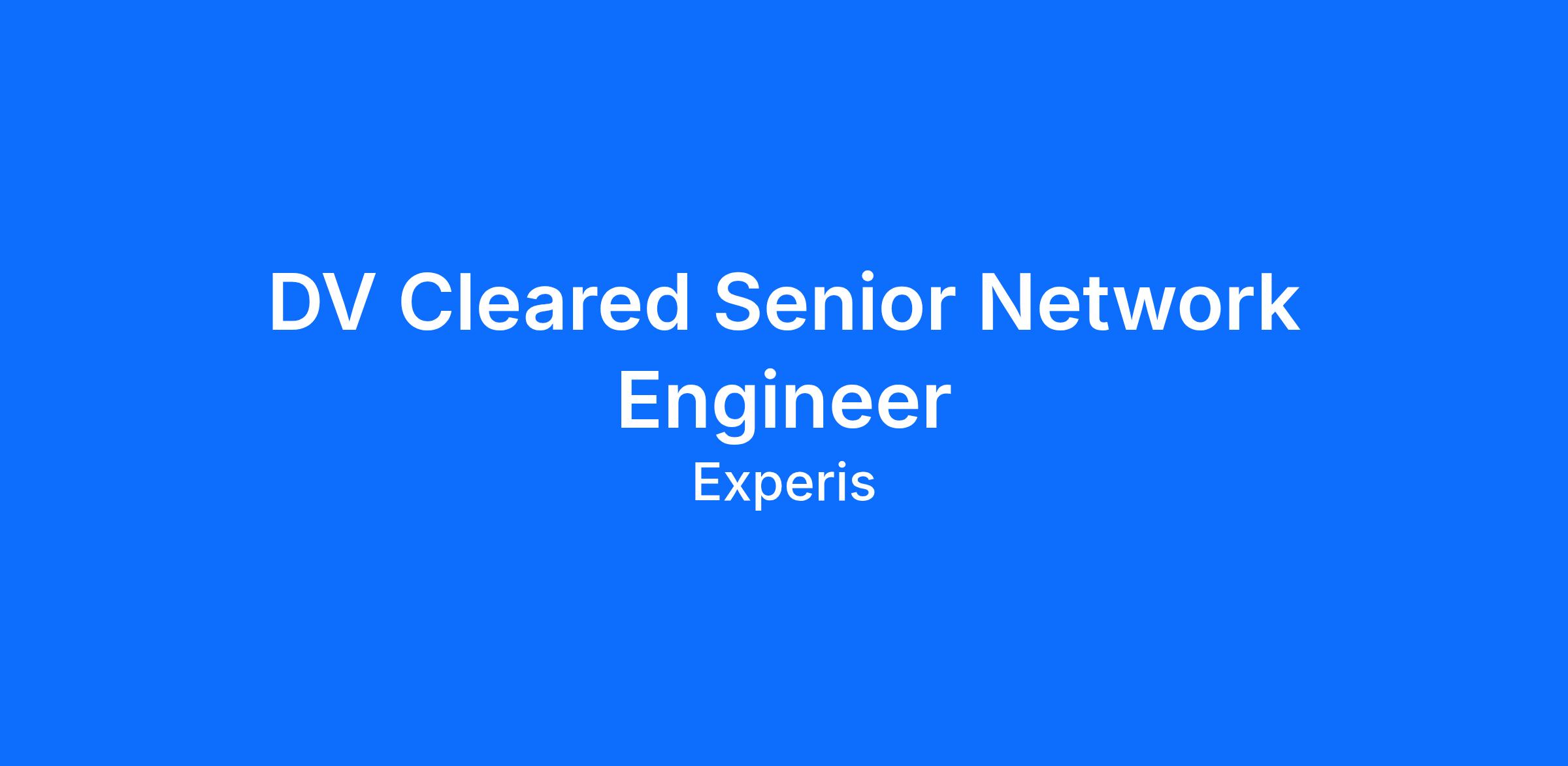 Job Title: DV Cleared Senior Network Engineer