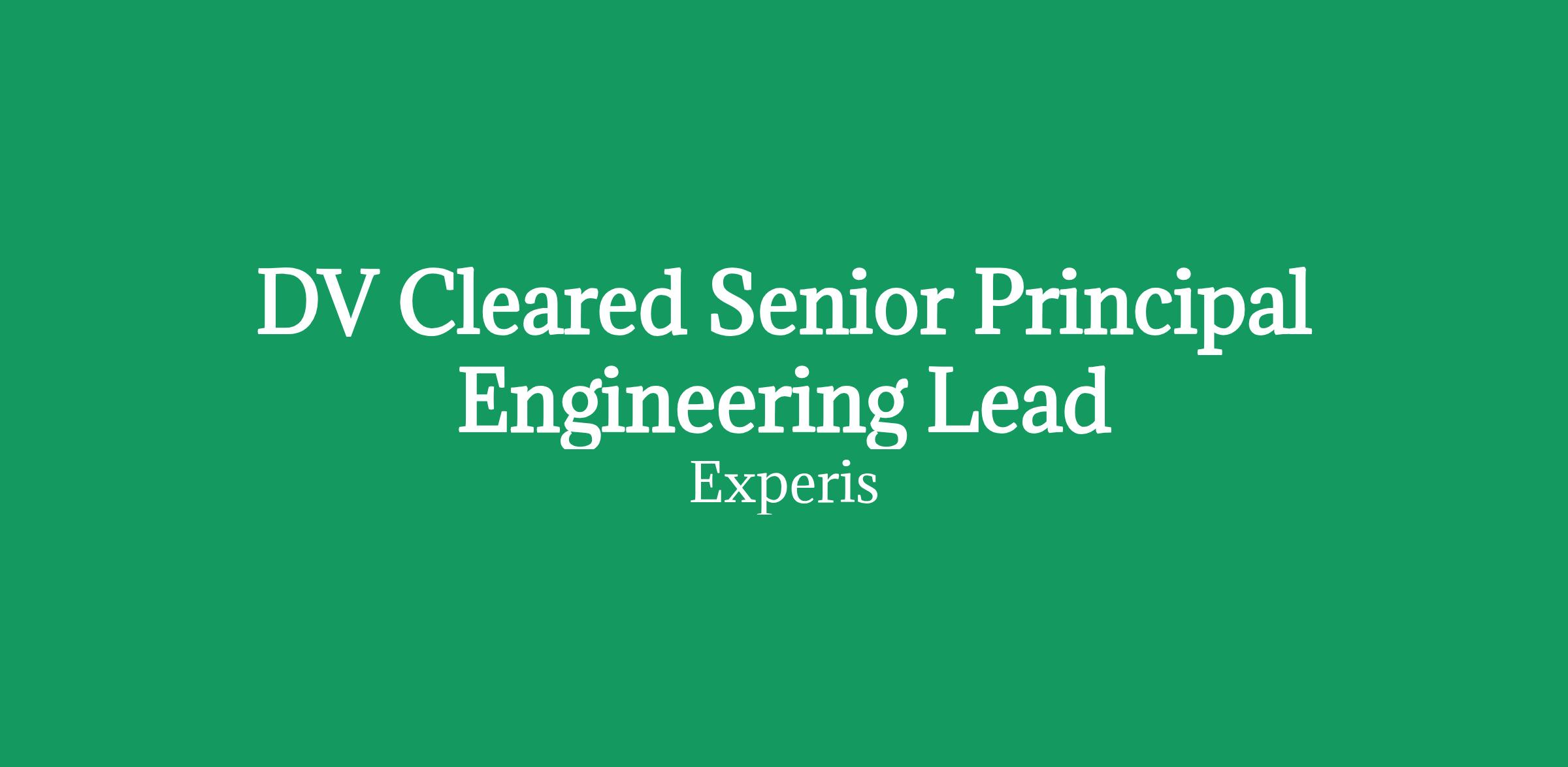 Job Title: DV Cleared Senior Principal Engineering Lead - Mission IT