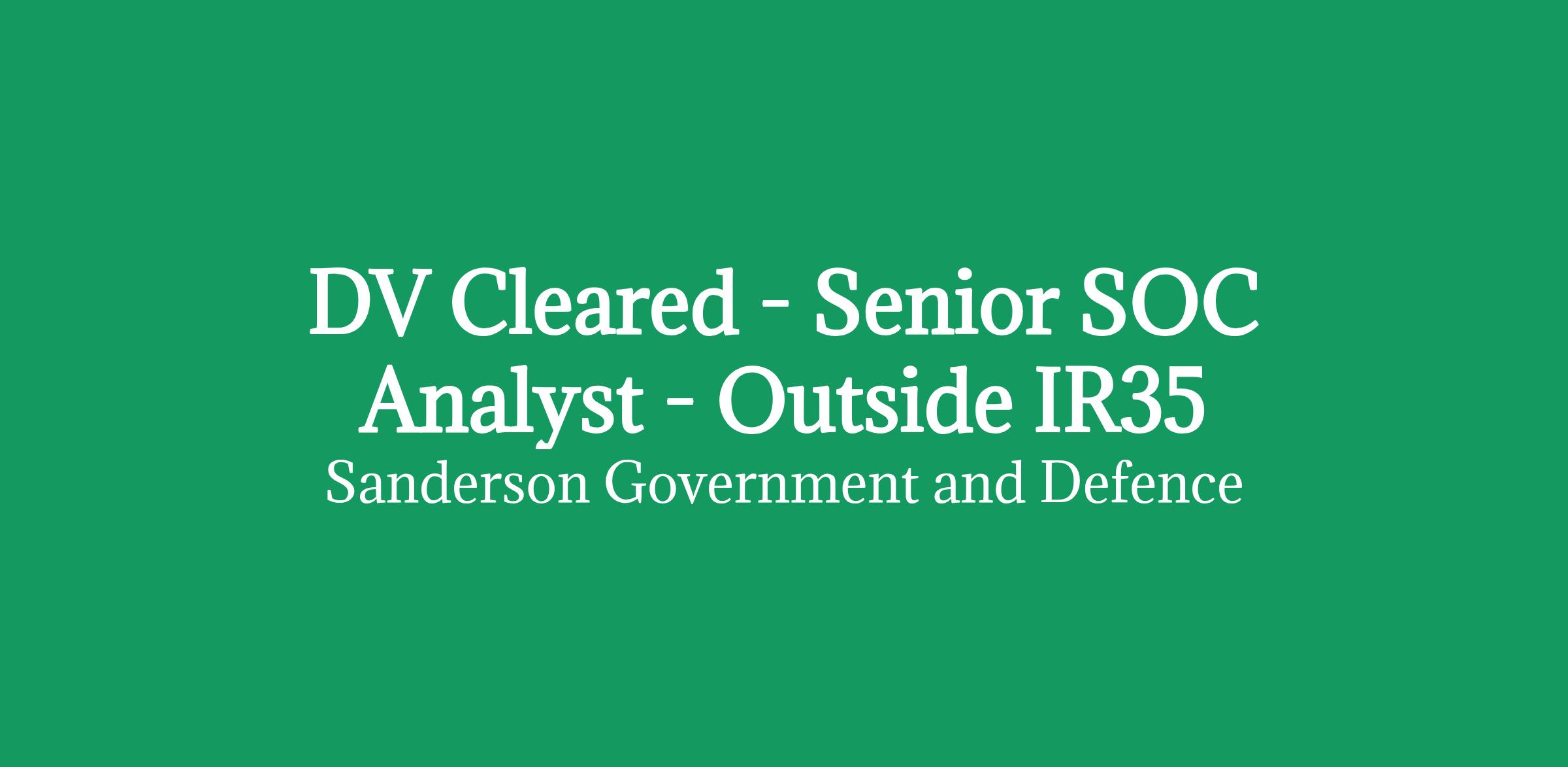 Sanderson Government and Defence are seeking Senior SOC Analysts in the Defence sector for an on-going programme of work with a cyber security supplier into the click apply for full job details