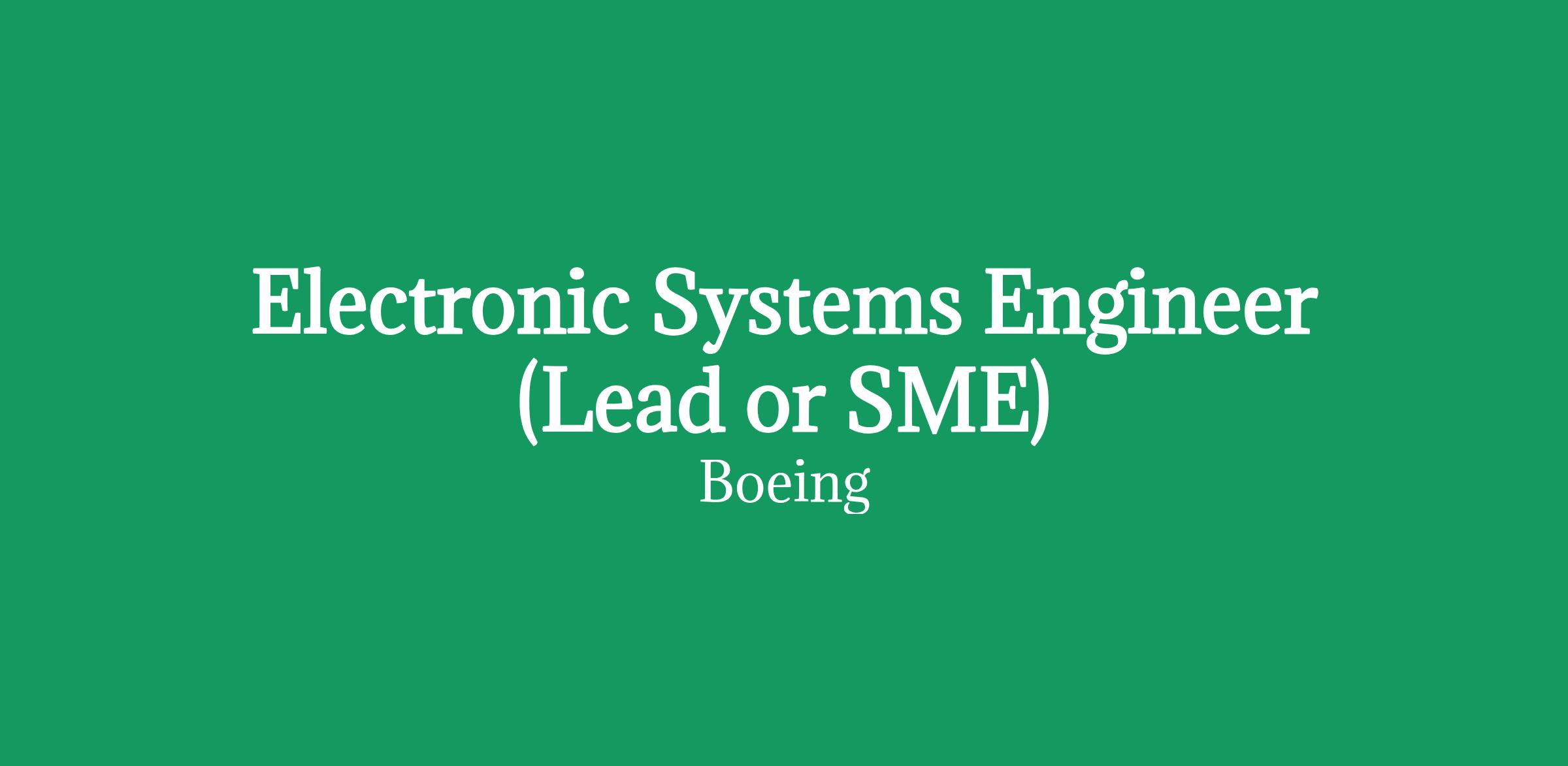 Boeing Commercial Airplanes (BCA) is hiring for Electronic Systems Engineer (Lead or SME) to join the 787 Electronic Systems (Avionics, Integrated Modular Avionics, Network Systems, & Electrical Subsystems) team located in North Charleston, South Carolina.