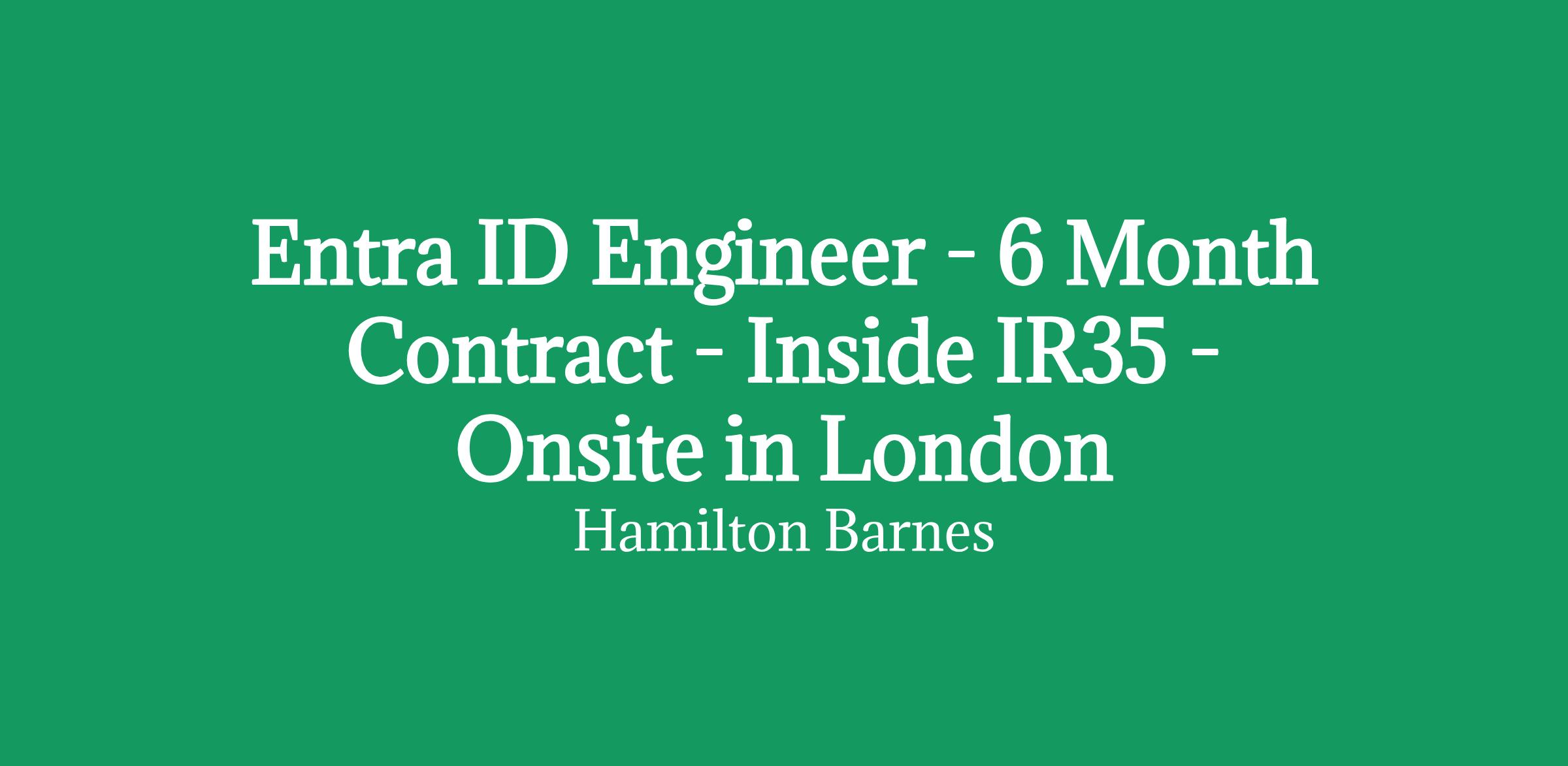 Entra ID Engineer - 6 Month Contract - Inside IR35 - Onsite in London