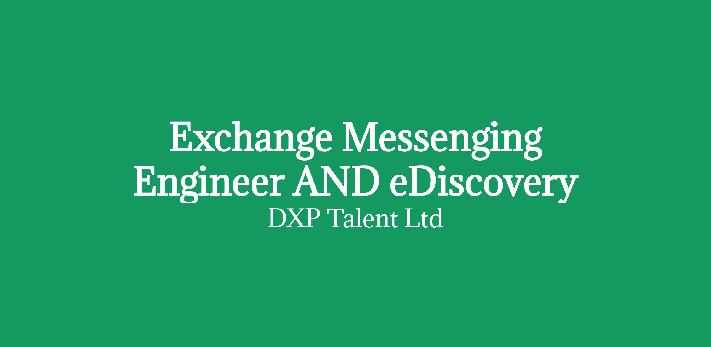 DXP Talent is hiring for an Exchange/Messaging Engineer with experience in eDiscovery to join a Global Consultancy Client for an initial 6 months. The role is remote but may require occasional trips to London.