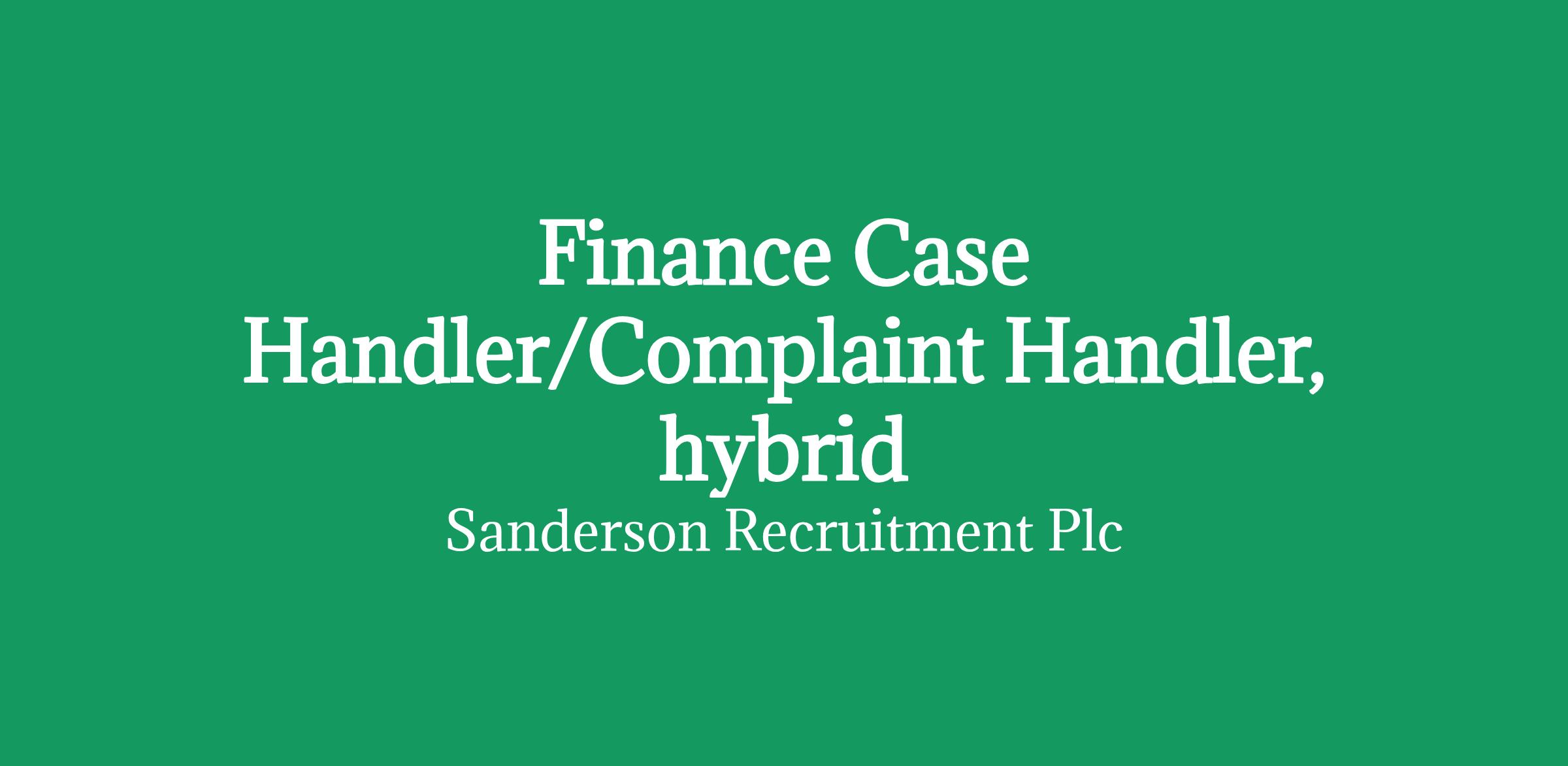 Finance Case Handler/Complaint Handler, hybrid