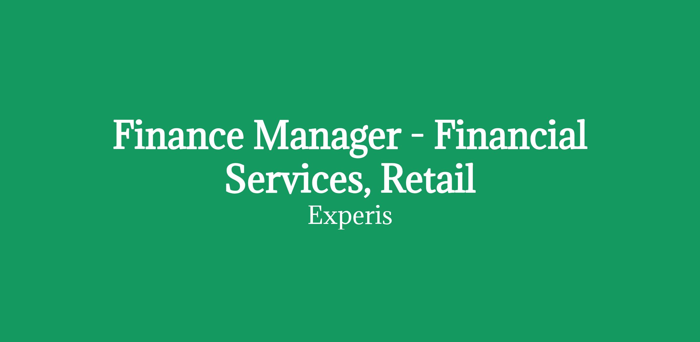 Finance Manager - Financial Services, Retail