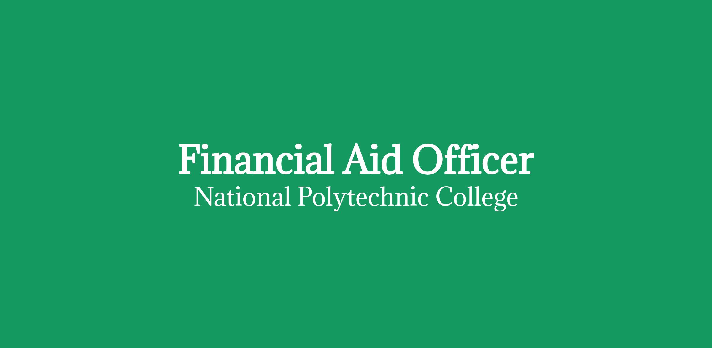 National Polytechnic College has an immediate opening for a highly motivated, results-oriented Financial Senior Aid Officer to work at ourLakewood, CA campus. This position will be responsible for packaging students for Title IV funding.