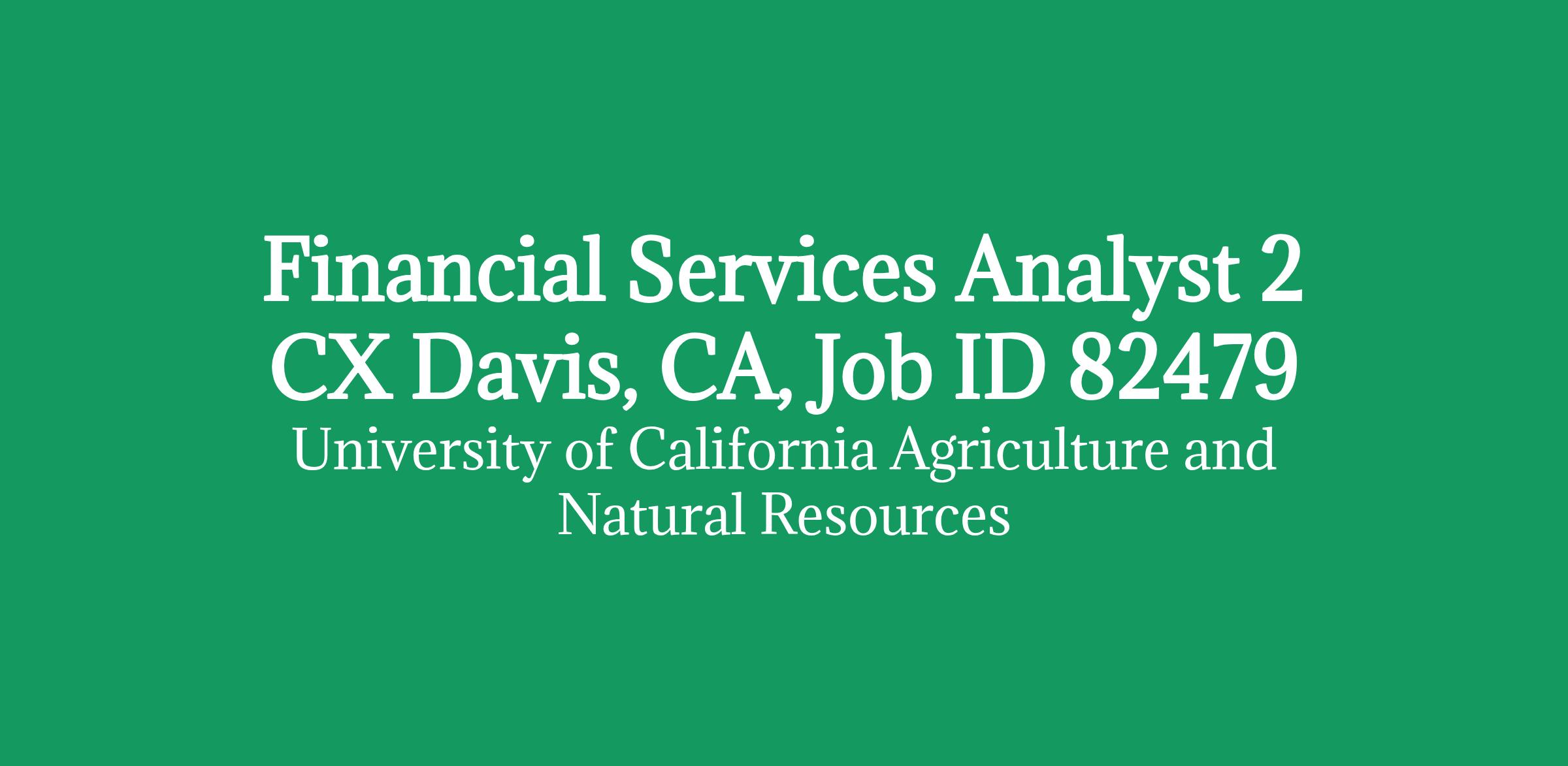 Financial Services Analyst 2 CX Davis, CA, Job ID 82479