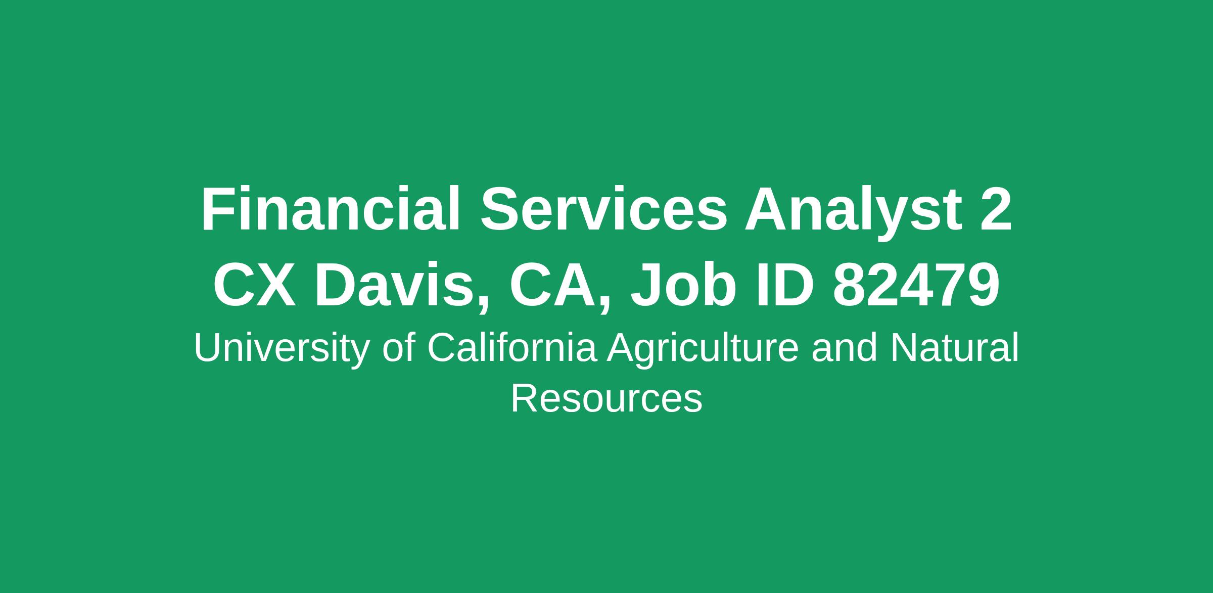 Financial Services Analyst 2 CX Davis, CA, Job ID 82479