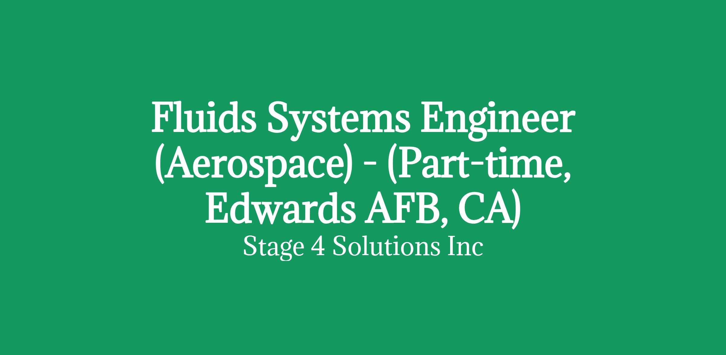 Fluids Systems Engineer (Aerospace) - (Part-time, Edwards AFB, CA)