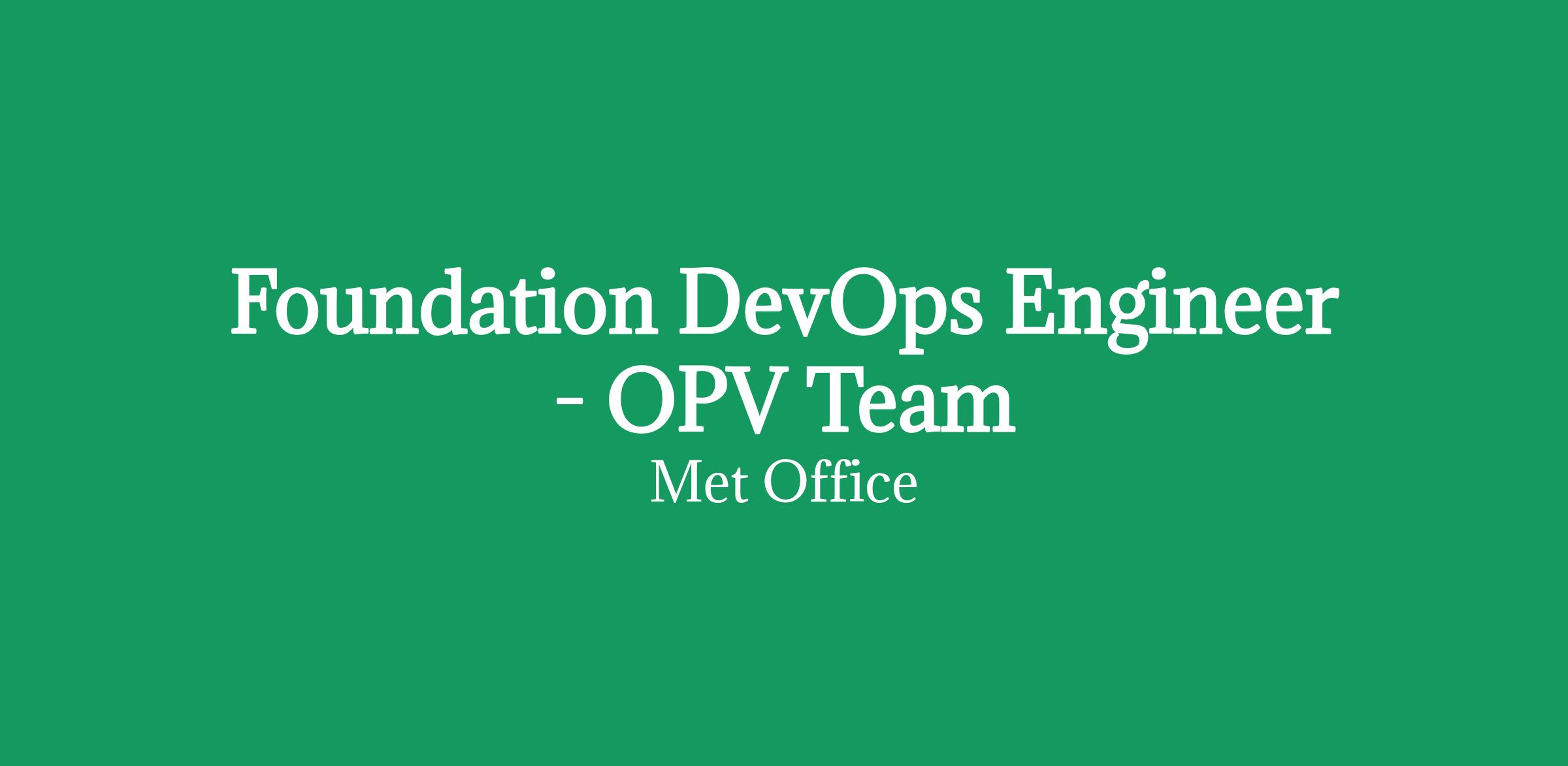 As an OPV (OpMet Production and Visualisation) Foundation DevOps Engineer, you would supportlive OpMet (Operational Meteorology) solutions with an emphasis on creating and maintaining usable, accessible and supportable services for our OpMet community.