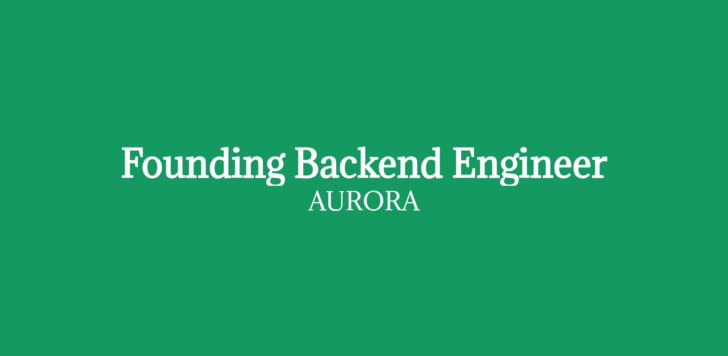 The roleWe're hiring a highly ambitious Founding Backend Engineer to work closely alongside our CTO and core engineering team to build and evolve Aurora's backend systems.