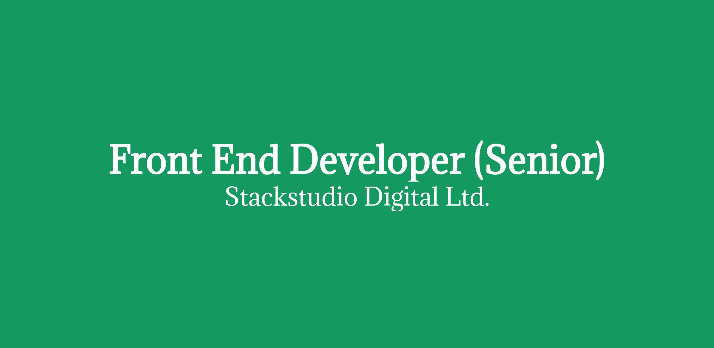 Role Details - Role/Job Title: Front End Developer (Senior)