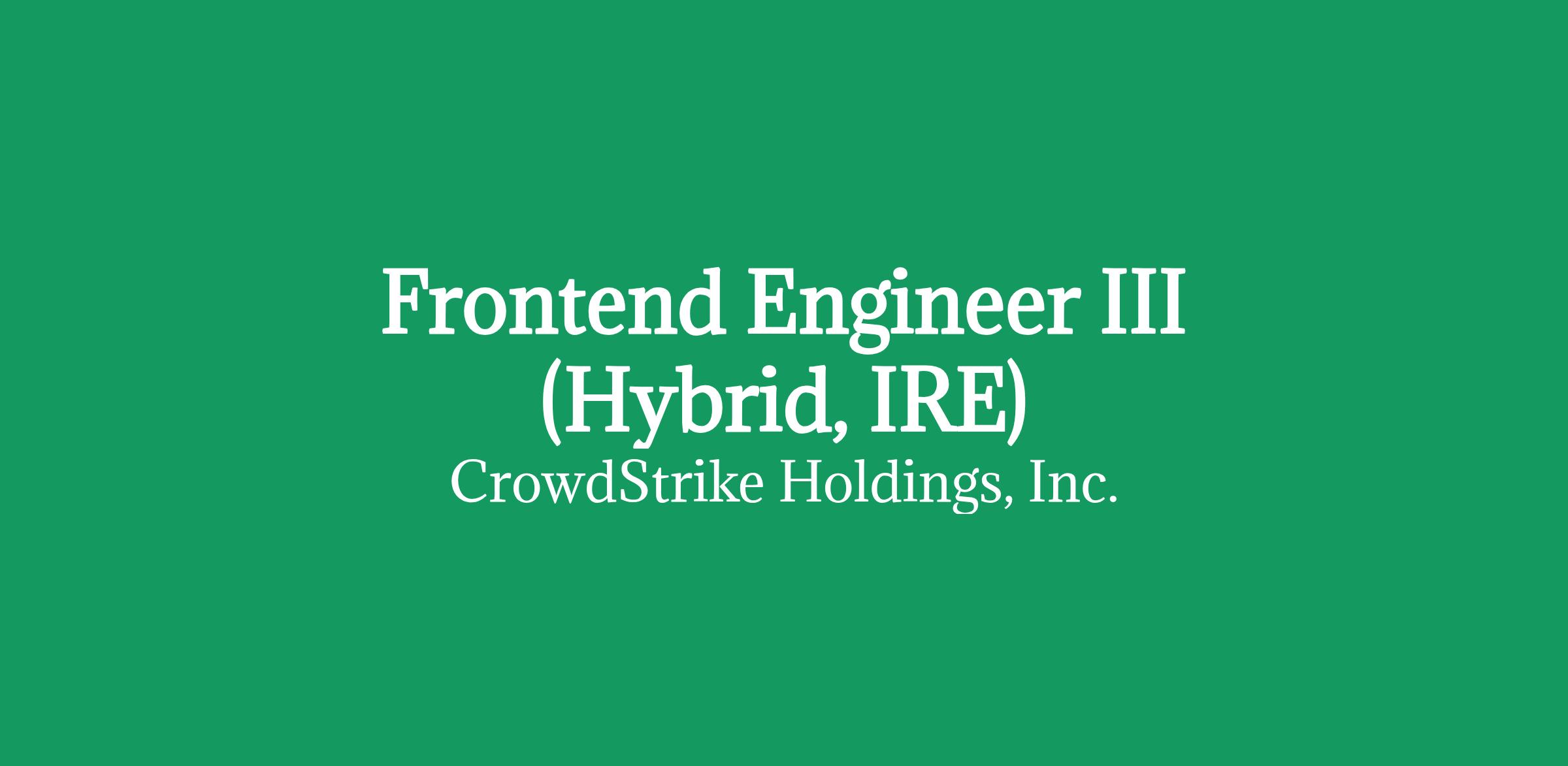 As a global leader in cybersecurity, CrowdStrike protects the people, processes and technologies that drive modern organizations. Since 2011, our mission hasn't changed - we're here to stop breaches, and we've redefined modern security with the world's most advanced AI-native platform. We work on large scale distributed systems, processing almost 3 trillion events per day and this traffic is growing daily About the Role: Our Falcon Foundry (SOAR) product is a highly extensible No-Code/Low-Code means of automating all sorts of complex workflow creation and execution. We're seeking an E6 frontend engineer to join an established high-performing team in expanding a number dynamic feature areas spanning highly complex triggers and views, large scale data visualizations, and more. You'll collaborate closely with UX designers and QA to maintain a consistent user experience across all our products, as well as product management and backend engineers to establish product specifications and features. Our ideal candidate will be responsible for taking full ownership of the delivery of our products, driving the technical aspects, helping the team to define the architecture and coordinating with stakeholders in terms of scope and priorities. Please note: This is a hybrid role based in Dublin, Ireland. We do not sponsor relocation to Ireland at this time.As a Front-End Engineer at CrowdStrike, you will work with a talented and dedicated team to build and maintain the user interface for this arm of the Falcon platform. You will provide a high quality user experience that our customers around the world use 24/7 to protect their systems from the most sophisticated adversaries.Our JavaScript framework is Ember, but if you've used React, Angular, or Vue.js, you'll feel right at home, and we'll help you get comfortable with both Ember and our codebase. Since we only support evergreen browsers, we can push the boundaries of what's possible on the web platform while working with truly massive amounts of data. Our ideal candidates are sensitive to the needs of the users and love to find solutions in a unique and dynamic problem space. right What You'll Do: Build and maintain single page web applications written in JavaScript using Ember.js Participate in the code review process for your own code and that of your fellow UI Engineers Take initiative and build tools that improve your teams development experience Write automated tests for your code Collaborate with fellow UI Engineers, Cloud Engineers, UI Designers, Technical Writers, User Researchers, QA Analysts, Product Managers, and others Continually learn about the ever-evolving challenges and complexities of the cybersecurity industry Have fun solving hard problems What You'll Need: 5+ Years of experience building complex user interfaces for software products used at high scale, with the majority or most recent portion devoted toward a SaaS product A deep understanding of Javascript and considerable experience building thick-client applications with modern frameworks such as Ember, AngularJS, Backbone or React/Flux. Strong HTML & CSS skills, with bonus points for experience with animation, knowledge of approaches to scalable/modular CSS, & preprocessors such as SCSS & LESS. Experience with testing frameworks, tools and methodologies such as QUnit, Mocha & Selenium. Functional knowledge & interest in developing genuinely accessible interfaces. A desire to collaborate closely with users, designers, & testers to deliver quality software that solves problems. Familiarity with client-side build processes & tools - git, yarn, npm, Ember CLI etc Comfortable with Git/version control workflows. Bonus Points: Experience creating or contributing to open source projects. Experience with graphics & visualization tools such as D3 or ThreeJS. Interest & experience with design & data visualization. Experience with coaxing that last frame-per-second out of browsers. Experience with web accessibility testing and support. Please note: This is a hybrid role based in Dublin, Ireland. We do not sponsor relocation to Ireland at this time. Benefits of Working at CrowdStrike: Market leader in compensation and equity awards Comprehensive physical and mental wellness programs Competitive vacation and holidays for recharge Paid parental and adoption leaves Professional development opportunities for all employees regardless of level or role Employee Networks, geographic neighborhood groups, and volunteer opportunities to build connections Vibrant office culture with world class amenities Great Place to Work Certified across the globeCrowdStrike is proud to be an equal opportunity employer. We are committed to fostering a culture of belonging where everyone is valued for who they are and empowered to succeed. We support veterans and individuals with disabilities through our affirmative action program.CrowdStrike is committed to providing equal employment opportunity for all employees and applicants for employment. The Company does not discriminate in employment opportunities or practices on the basis of race, color, creed, ethnicity, religion, sex (including pregnancy or pregnancy-related medical conditions), sexual orientation, gender identity, marital or family status, veteran status, age, national origin, ancestry, physical disability (including HIV and AIDS), mental disability, medical condition, genetic information, membership or activity in a local human rights commission, status with regard to public assistance, or any other characteristic protected by law. We base all employment decisions including recruitment, selection, training, compensation, benefits, discipline, promotions, transfers, lay-offs, return from lay-off, terminations and social/recreational programs on valid job requirements.If you need assistance accessing or reviewing the information on this website or need help submitting an application for employment or requesting an accommodation, please contact us at for fu