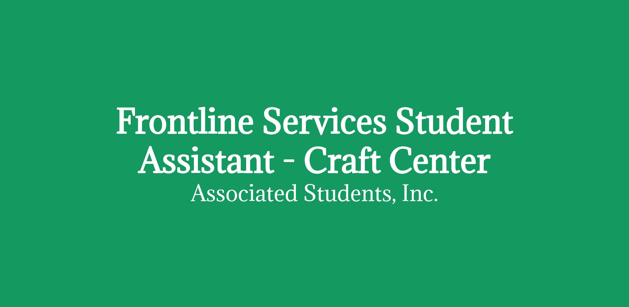 The Craft Center Frontline Services Student Assistant is responsible for overseeing the Craft Center space, enforcing safety and compliance measures, ensuring smooth operations, and providing exceptional customer service. The Craft Center Frontline Services Student Assistant manages a high volume of diverse requests and shall be a knowledgeable resource for visitors.
