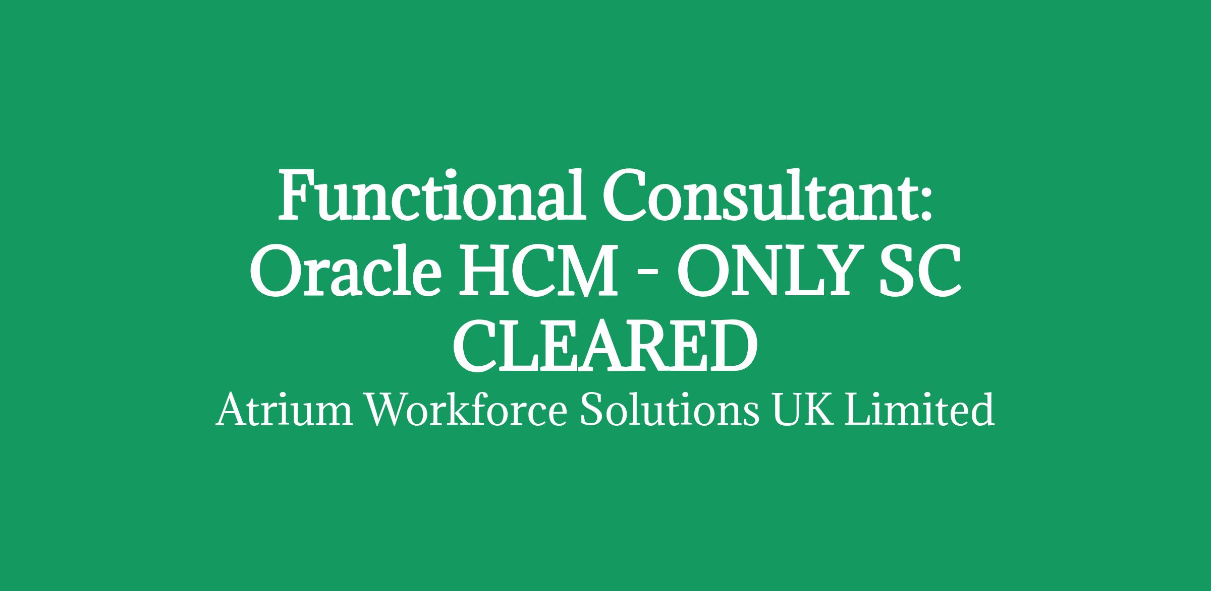 Functional Consultant: Oracle HCM - ONLY SC CLEARED