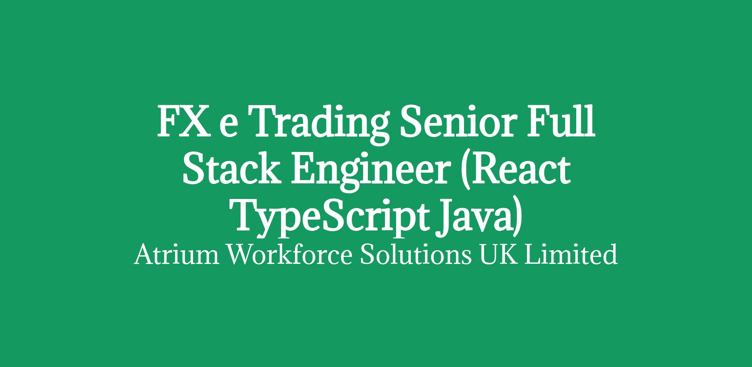 * Job Title: FX e Trading Senior Full Stack Engineer (React TypeScript + Java)