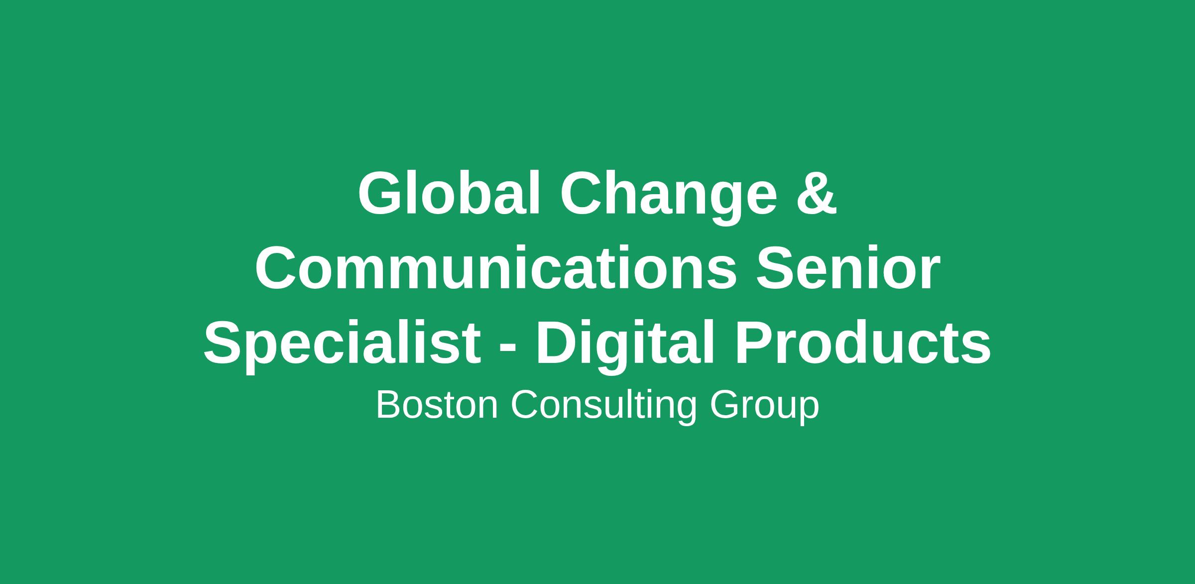 What You'll Do We are seeking a candidate to join our Change Management and Communications Center of Expertise (CoE) to support product portfolios focused on delivering our digital workforce experience to employees. This role brings change management knowledge and experience collaborating with agile product delivery teams. You will collaborate with a team of specialized experts to shape how BCG employees work, make decisions, and adopt digital products. You will partner with other change managers & specialists in the CoE to identify, use and contribute to best practices and lessons learned. Please note that this role is focused on company-internal (not client-facing) marketing, communications and change management. You are good at