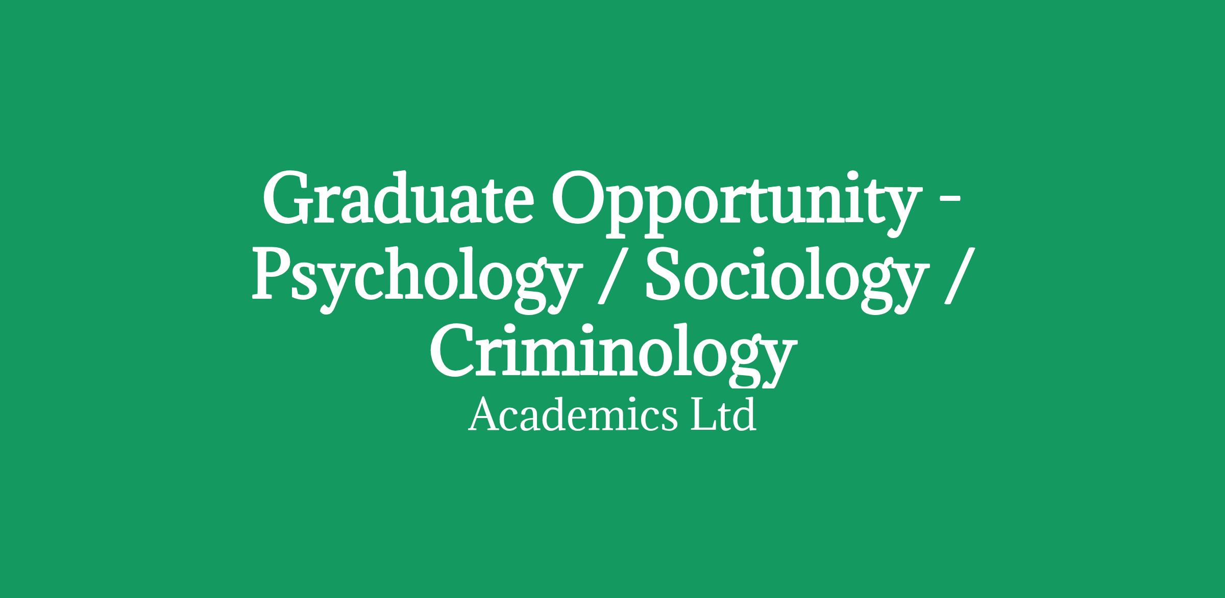 Graduate Opportunity - Psychology / Sociology / Criminology
