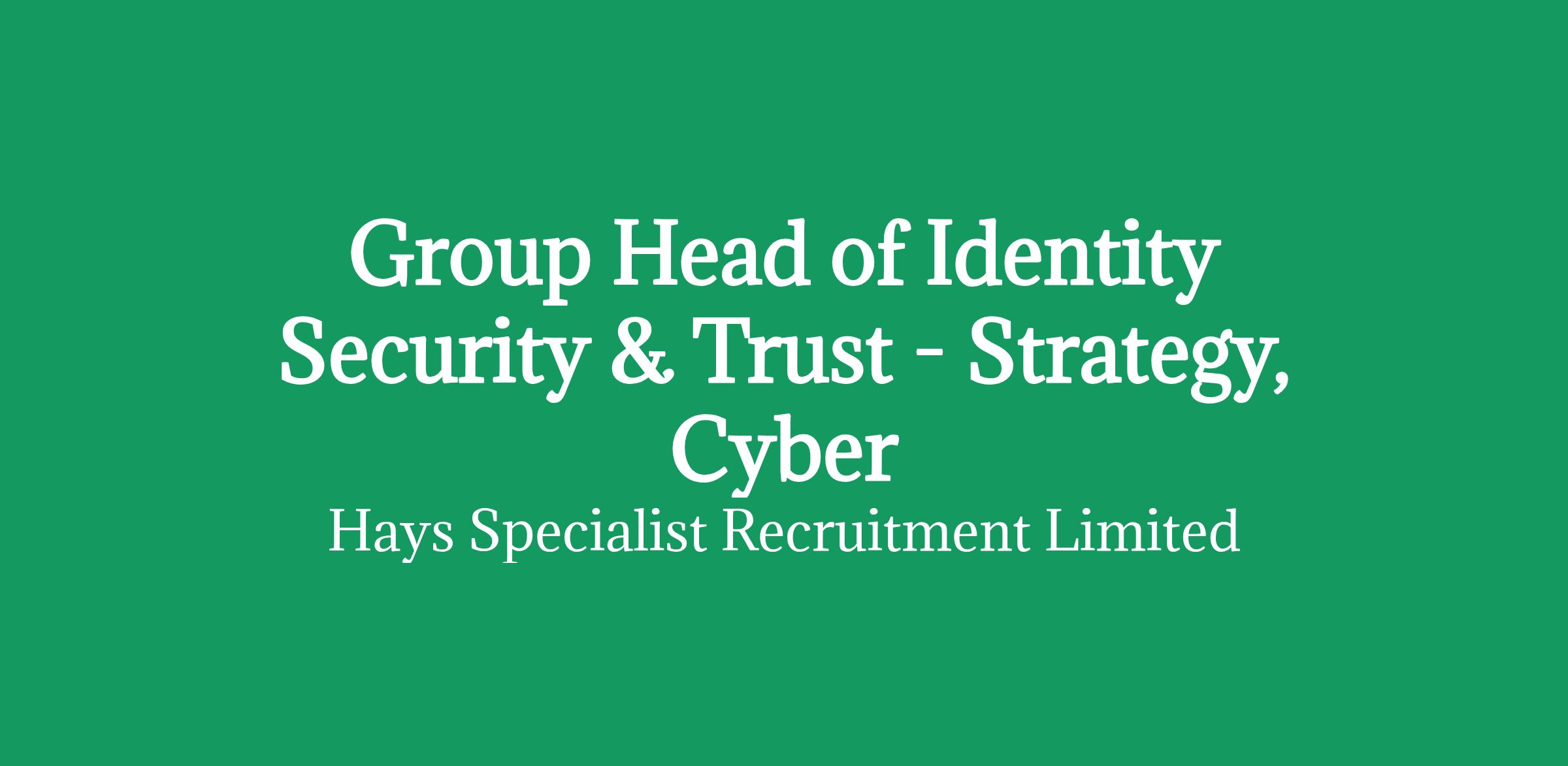 Group Head of Identity Security & Trust - Strategy, Cyber, Zero Trust